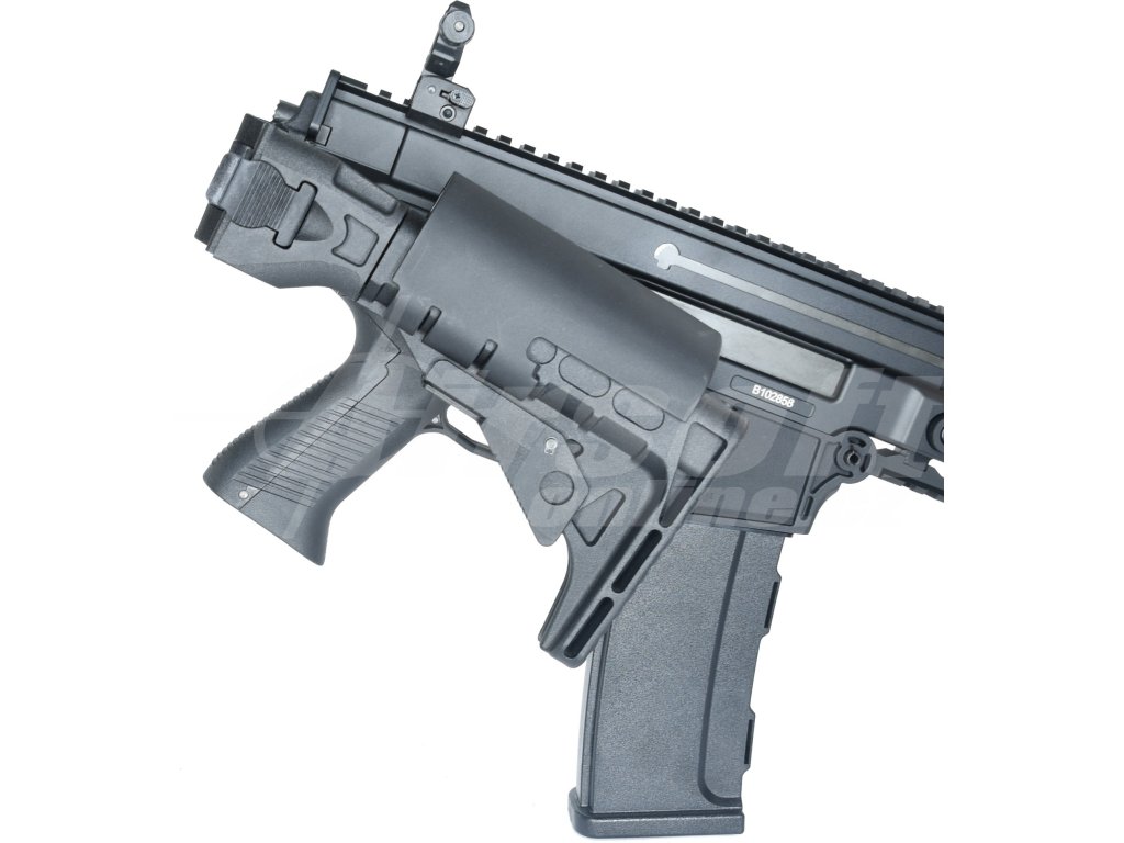 Pažba je délkově nastavitelná v pěti pozicích a lze ji sklopit do strany nebo po vyjmutí čepu úplně odstranit. Lícnici lze jednoduše přizpůsobit pro praváky i leváky. Se zbraní jsou dodávána odnímatelná sklopná mířidla. R.I.S . lišty poskytují dostatečnou variabilitu a prostor pro osazení příslušenství. Všechny ovládací prvky lze plně uzpůsobit i pro použití leváky.