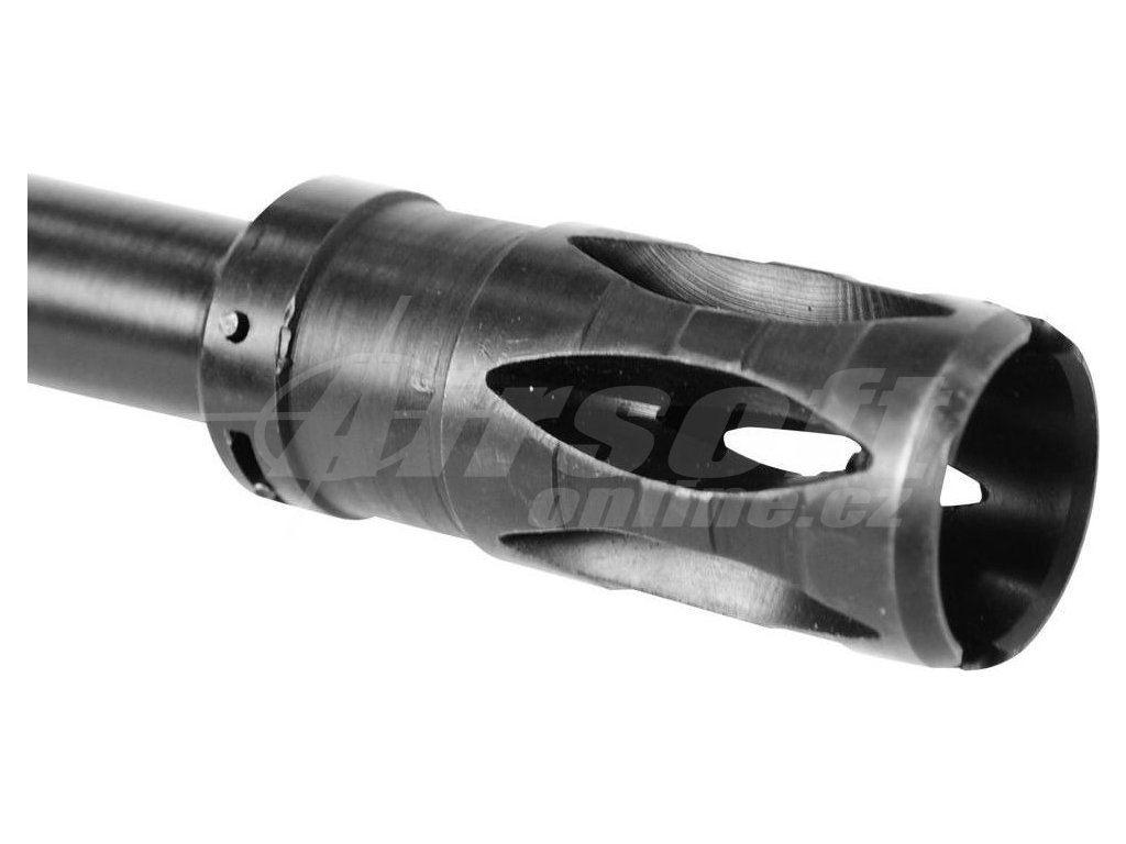 Kvalitní výrobce si ovšem hlídá i vysoký standard vnitřních dílů. Mechabox pro tuto pušku je vybaven 9 mm kuličkovými ložisky, kola jsou ocelová a několik dalších dílů je vyrobeno z kvalitního hliníku nebo plastů. I díky tomuto mechaboxu dosahuje tato zbraň vysoké úsťové rychlosti.