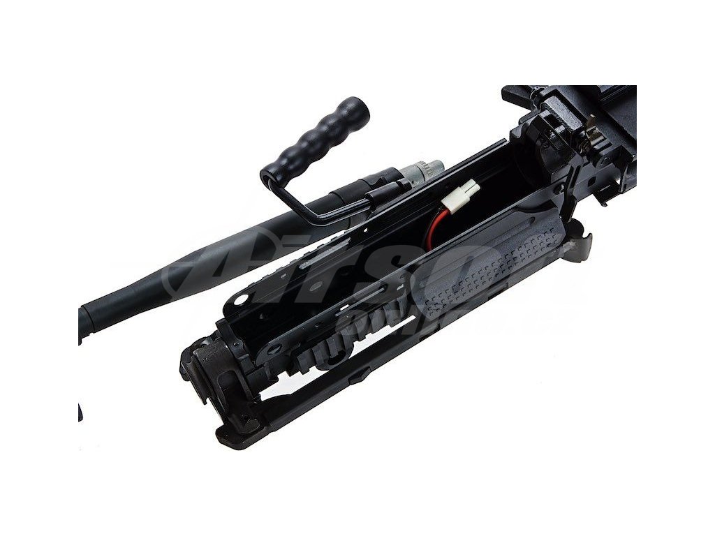 RIS předpažbí s integrovaným bipodem umožňuje montáž široké škály příslušenství – od optik, přes svítilny, až po přední rukojeti. Výsuvná pažba typu MK46 přidává na komfortu při manipulaci a přizpůsobí se každé postavě i situaci. Horní RIS lišta dovoluje snadnou montáž kolimátorů a zaměřovačů. Uvnitř zbraně se nachází vylepšený mechabox M249 typu "cihla", známý svou pevností. Je osazen ocelovými převodovými koly, CNC tryskou a hlavou válce i pístu. Společně s kvalitní pianovou pružinou německé výroby a hliníkovým trnem pružiny tvoří extrémně odolné a přesné srdce celého systému.