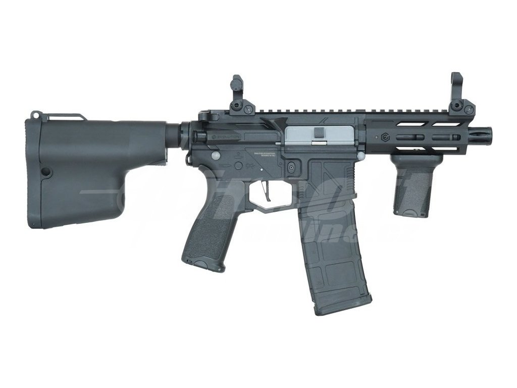Tělo zbraně je vyrobeno z pevného polymeru Carbontech, který kombinuje nízkou hmotnost s vysokou strukturální pevností. Předpažbí z hliníku CNC je vybaveno systémem M-LOK pro montáž příslušenství. Zesilovač hluku na hlavni dodává zbrani nejen jedinečný zvukový efekt, ale i agresivní vzhled. Celková délka činí pouhých 515/600 mm a váha 2,469 kg, což ocení hlavně ti, kteří preferují lehké a kompaktní airsoftové zbraně.
