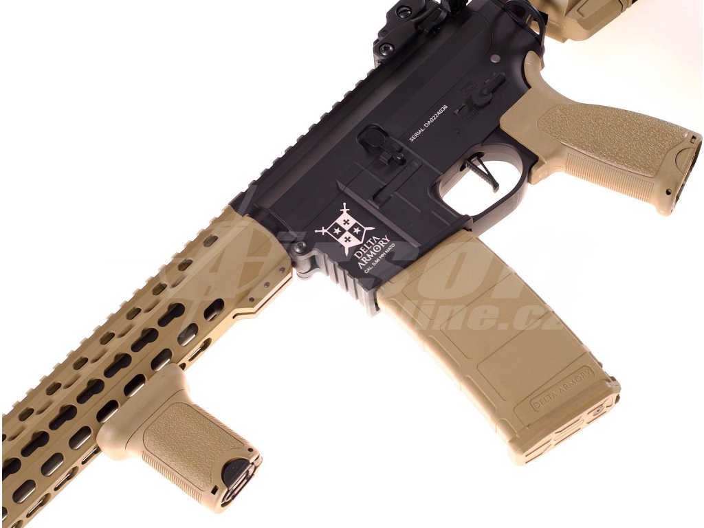 Airsoftová zbraň M4 SilentOps DMR Alpha EAGLE- TAN/černá, celokov, Delta Armory