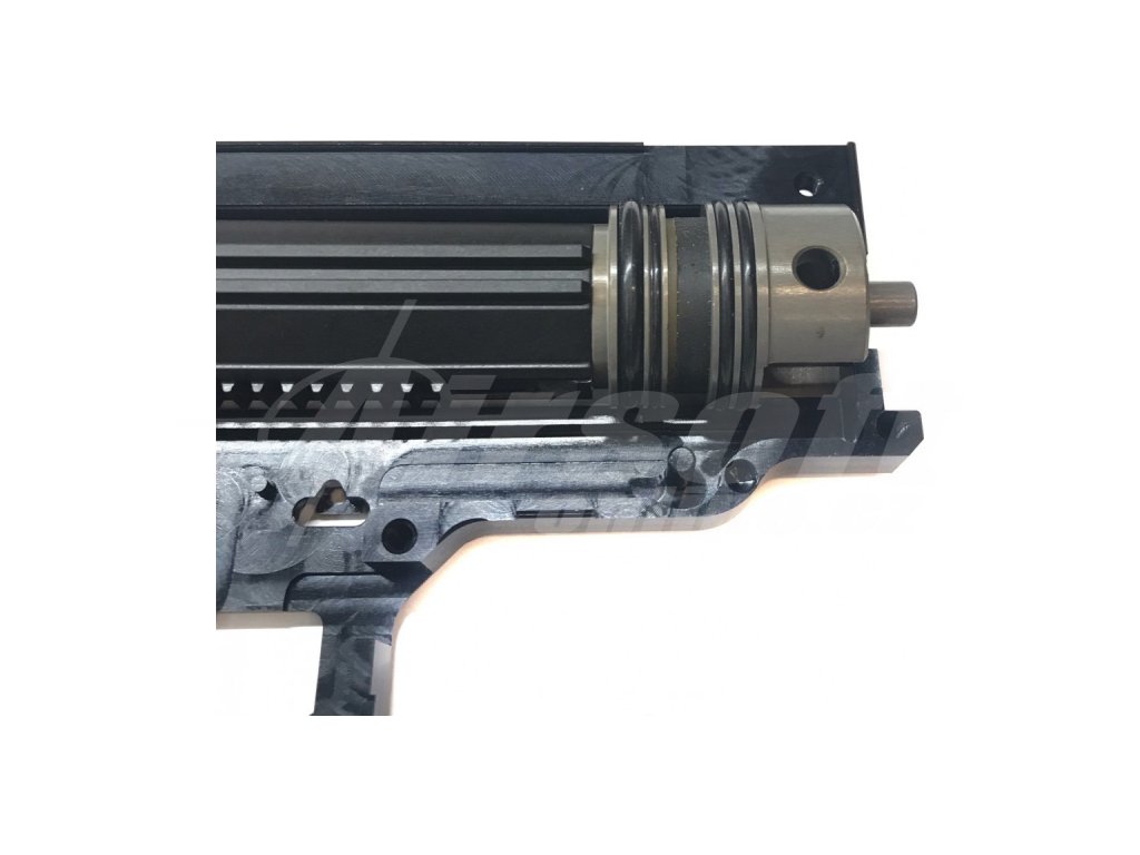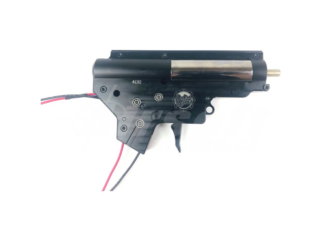 Licencovaná PAR MK3 od Delta Armory v konfiguraci GENERAL je hotový klenot českého inženýrství – celokovové tělo obráběné z leteckého duralu, precizně slícované RIS předpažbí a hmotnost pouhých 2,65 kg dávají tušit, že jde o zbraň, která vydrží vše. Vnitřnosti ovšem vyprávějí ještě zajímavější příběh – CNC mechabox Retro Arms s rychlovýměnou pružiny QSC, CNC kola SHS 18:1 a ACETAL píst s celokovovým hřebenem zvládnou dlouhodobě pružinu M160 a tlačí kuličky 0,30 g rychlostí 160 m/s (2,6 J) na vzdálenost přes 70 m.