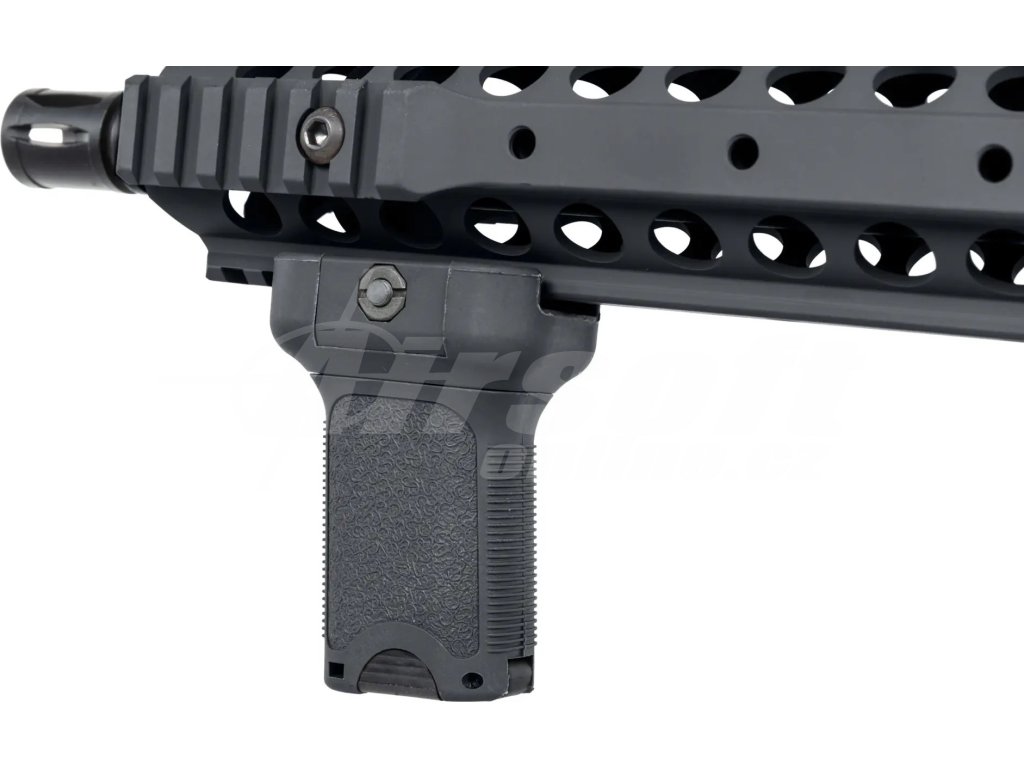 Vysokokapacitní Heavy Ops stock pohodlně pojme Li-pol 11,1 V a zároveň sedí pevně v rameni díky protiskluzovým gumovým panelům. RIS rozhraní na předpažbí DD RIII™ nabízí neomezené možnosti montáže optiky, kolimátoru či taktického světla.