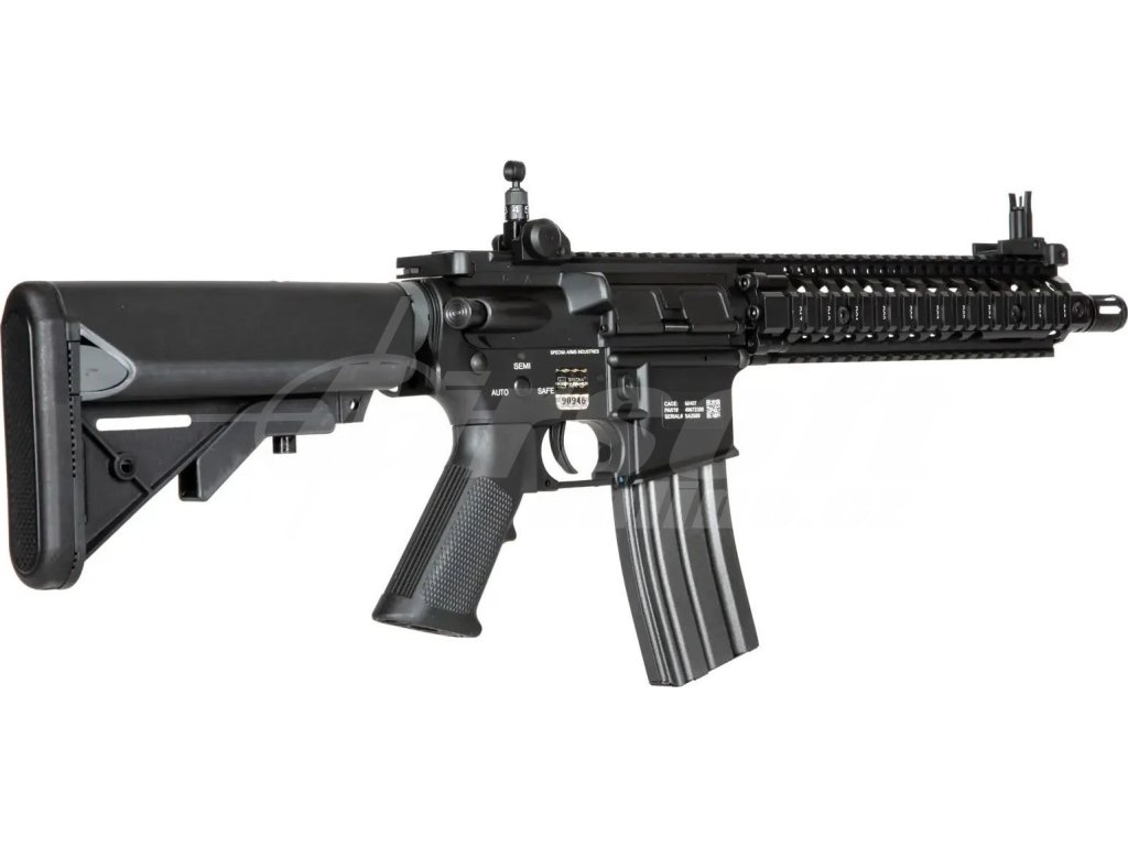 Tato replika vychází z osvědčené platformy M4/M16, která je od 60. let standardem v armádách NATO a široce využívaná po celém světě. Díky své modularitě, ergonomii a spolehlivosti je dnes základem nejen vojenské, ale i policejní výzbroje. Specna Arms tuto konstrukci přenáší do airsoftového světa s důrazem na realistické provedení a moderní technologie.