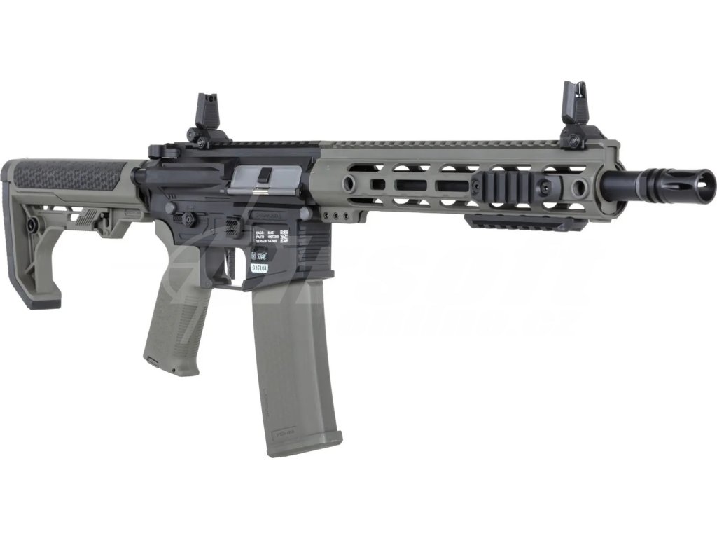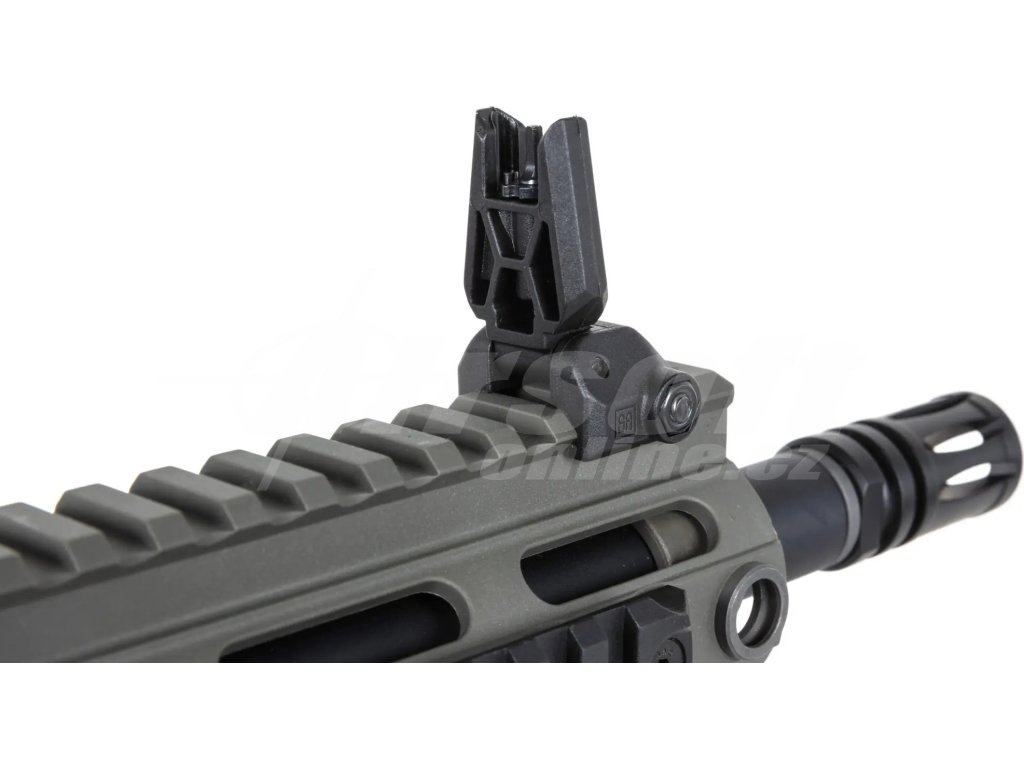 Airsoftová zbraň Specna Arms SA-F05 FLEX™ BLDC™ ve vojenském odstínu olivová je ideálním nástrojem pro hráče, kteří chtějí spojit moderní vzhled s maximální efektivitou. Tato zbraň patří mezi nejpokročilejší elektrické airsoftové repliky v poměru cena/výkon, a to nejen díky svému preciznímu zpracování, ale také díky pokročilé elektronice a kvalitním vnitřním dílům.
