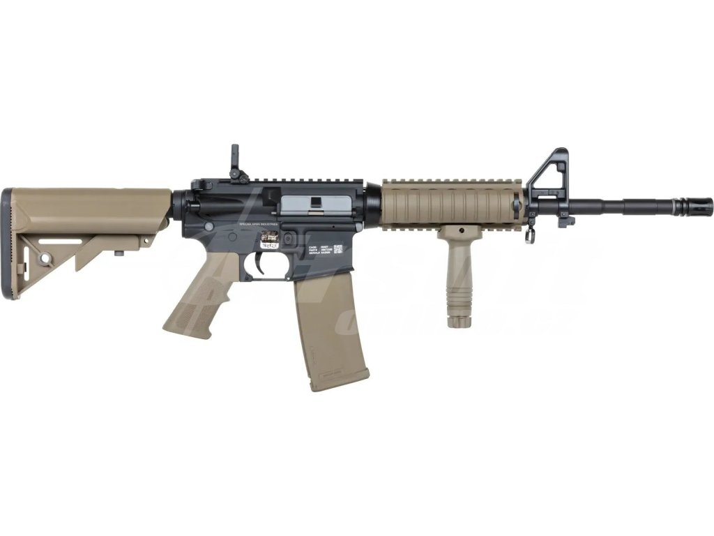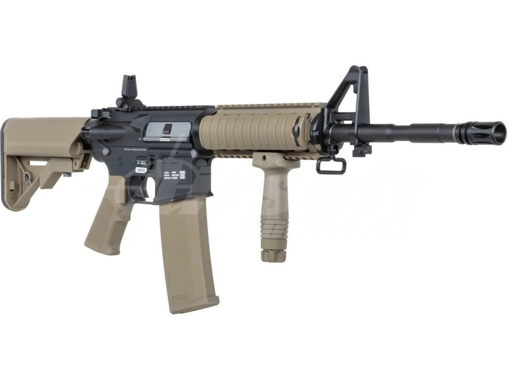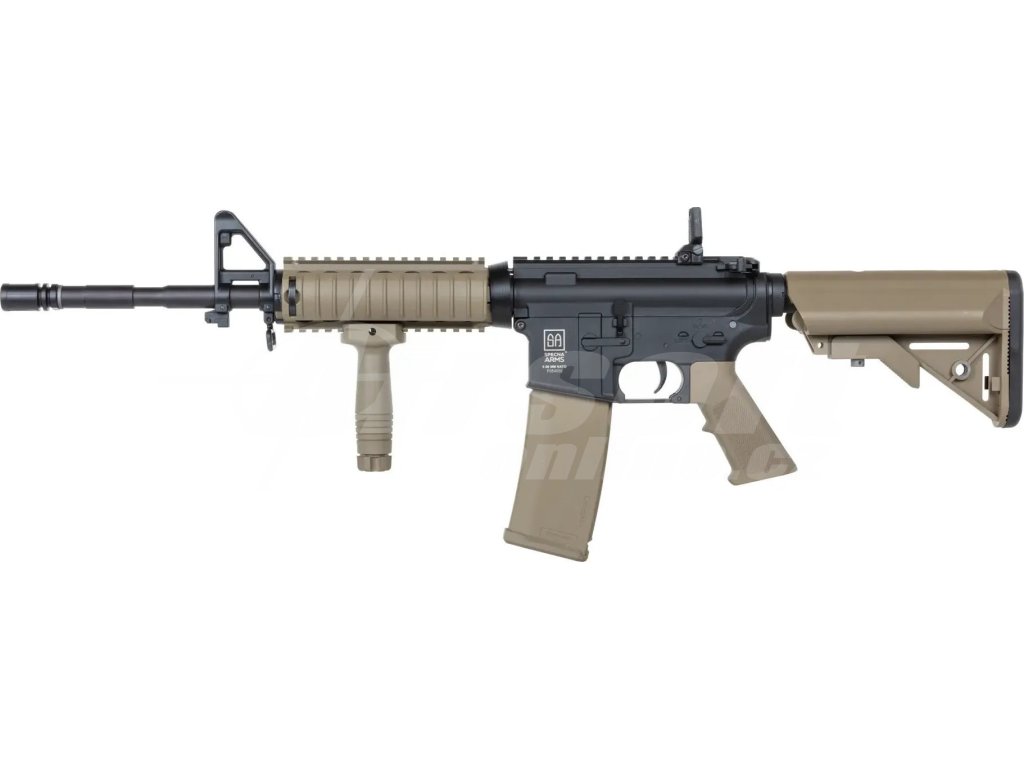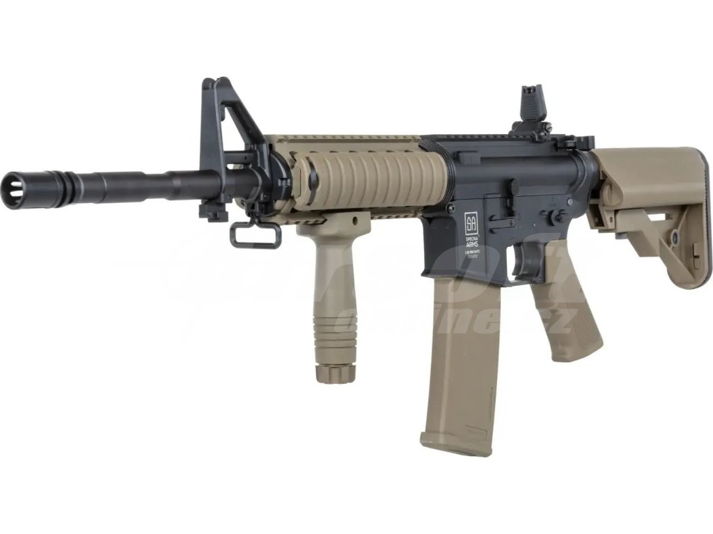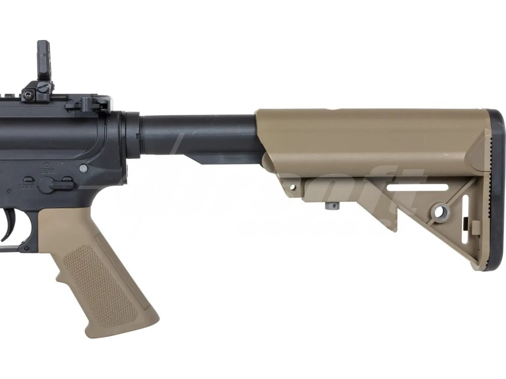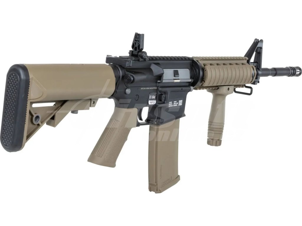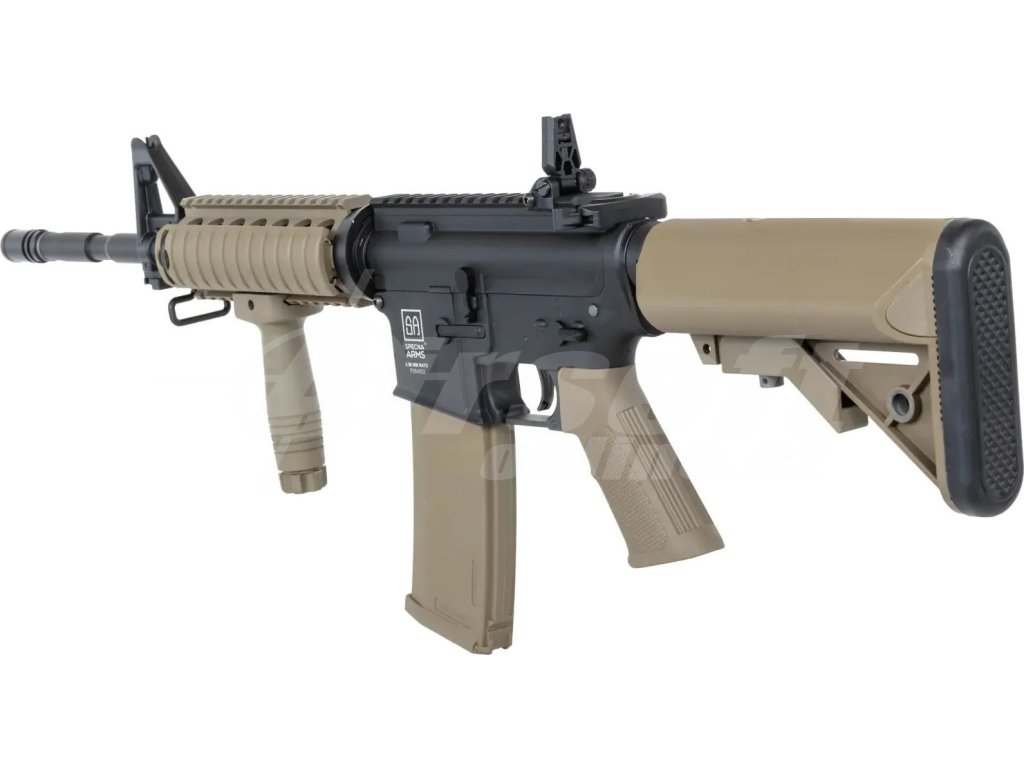 SA-F12 FLEX™ Half-Tan od renomovaného výrobce Specna Arms je moderní elektrická airsoftová karabina, která zaujme každého hráče, jenž hledá spolehlivost, vysoký výkon a solidní konstrukci za dostupnou cenu. V této cenové kategorii se jedná o jednu z nejvšestrannějších a nejlépe vybavených airsoftových zbraní na trhu. Vyniká nejen vizuálně atraktivní barevnou kombinací černé a pískové, ale především technickým zpracováním a vnitřní výbavou, která potěší jak začátečníky, tak pokročilé hráče.