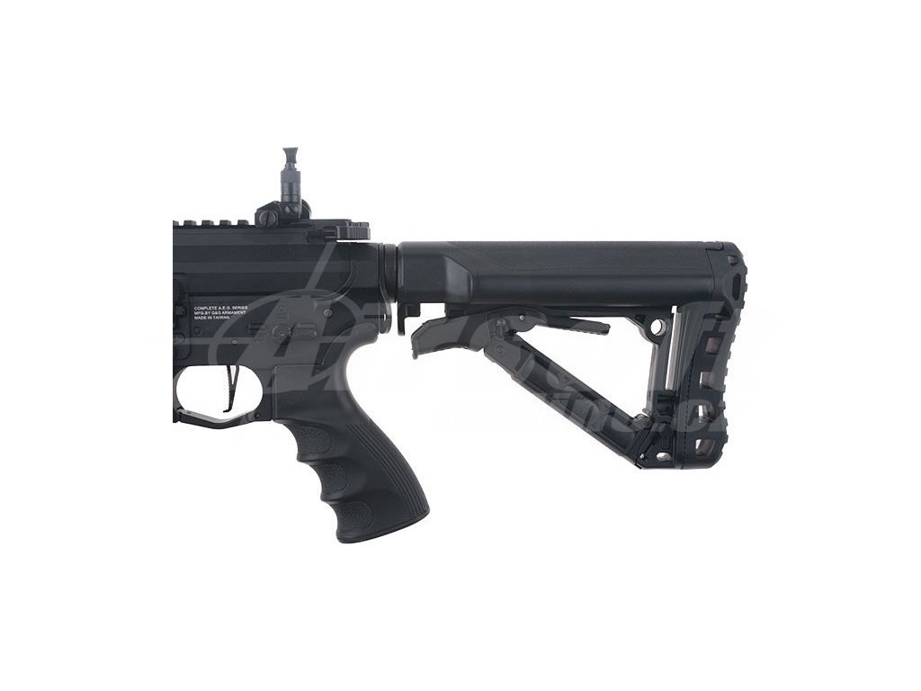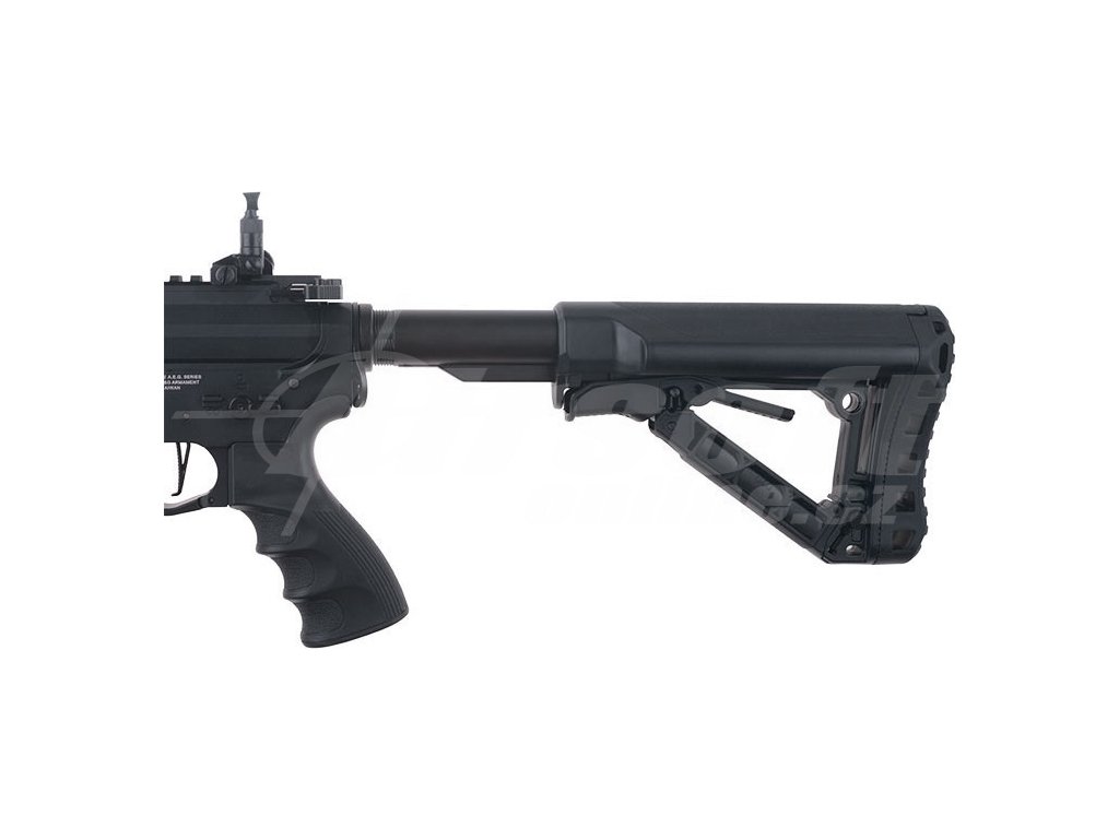 Zbraň má celokovové tělo vyrobené z kvalitní slitiny, které působí velmi robustně a odolně. RIS kovové předpažbí nabízí dostatek prostoru pro montáž příslušenství jako jsou svítilny, optiky nebo přední rukojeti. Délka zbraně činí 920 mm, váha přibližně 3090 g, což zajišťuje výbornou stabilitu při střelbě. Výsuvná pažba ukrývá prostor pro Li-Pol baterii 11,1 V, konektor typu Mini Tamiya je klasickou, ale osvědčenou volbou. Vnitřní hlaveň o délce 463 mm s průměrem 6,08 mm a regulovatelný hop-up výrazně přispívají k přesnosti.