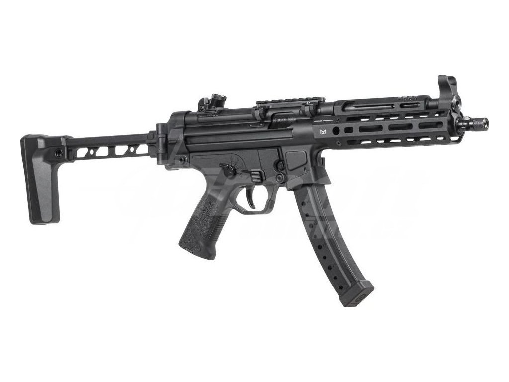Airsoftová replika světově známého samopalu se sklopnou pažbou. Provedení zbraně od Taiwanské značky G&G nabízí kovové tělo s kvalitní povrchovou úpravou a perfektním slícovaním. Díky integrovaným kontaktům v kloubu pažby, je možné střílet i se sklopenou pažbou. Předpažbí se systémem M-lok umožňuje montáž dodatečného příslušentsví (grip, svítilna,...).