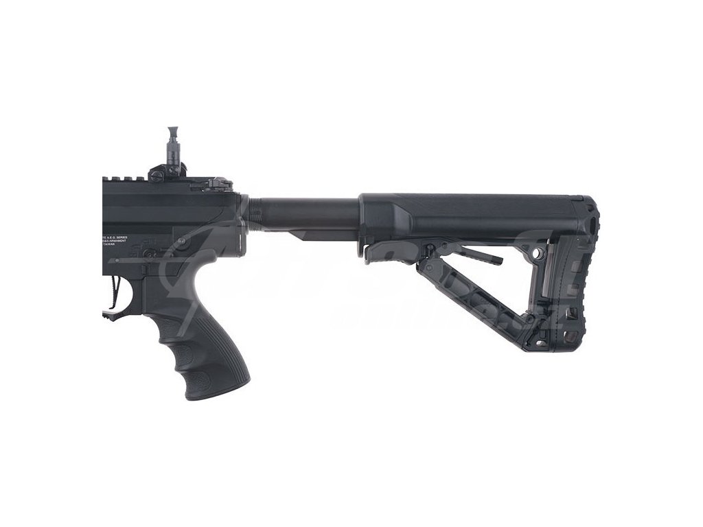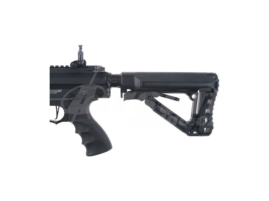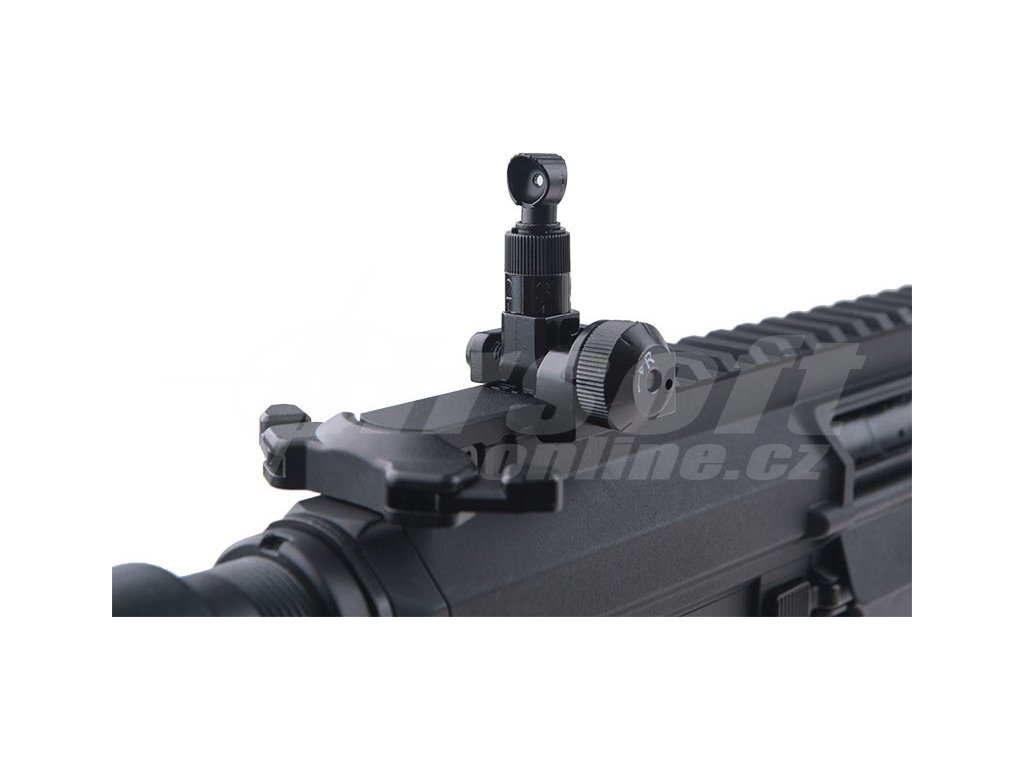 Airsoftová zbraň s celokovovým tělem a předpažbím. Předpažbí umožňuje instalaci Keymod R.I.S. lišt pro další příslušenství. Výsuvná pažba obsahuje úložný prostor pro baterii do příslušenství. Mířidla jsou sklopná a lze je demontovat. Do zbraně je instalován mosfet a řídící jednotka, která umožňuje přepnout automatickou střelbu na 3-ranou nebo 5-ranou dávku. Navíc ETU jednotka neumožňuje střelbu pokud ve zbrani není nabitý zásobník. Vestavěný Li-po alarm vás upozorní na nízké napětí baterie.