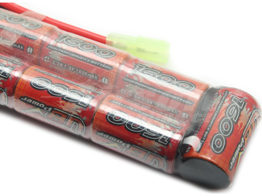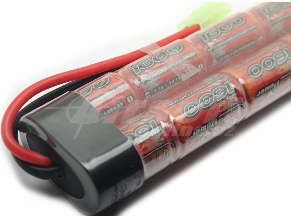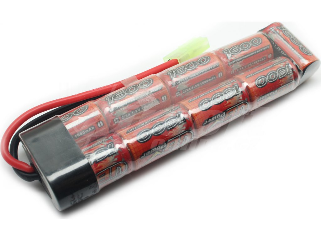 Nabíjecí NiMH baterie složená z devíti kvalitních článků za bezkonkurenční cenu! Má kapacitu 1600mAh a napětí 10,8V. Je určena pro upgradované zbraně, kde akumulátory 9,6V neposkytují dostatečnou energii, nebo kadenci. Pro zákazníky, kteří nechtějí, nebo nemohou využívat na údržbu náročné LiPol akumulátory.