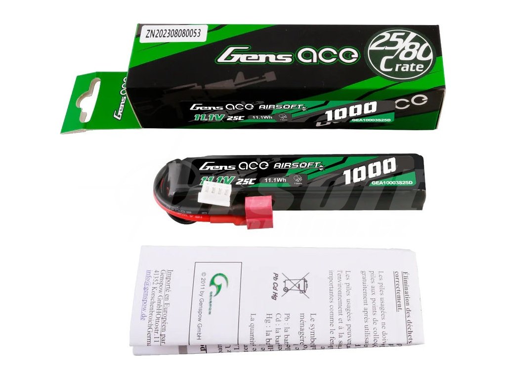 Li-Pol akumulátor Gens ACE 11,1V 1000mAh 25C Dean-T – Kompaktní síla pro vaši AEG zbraň