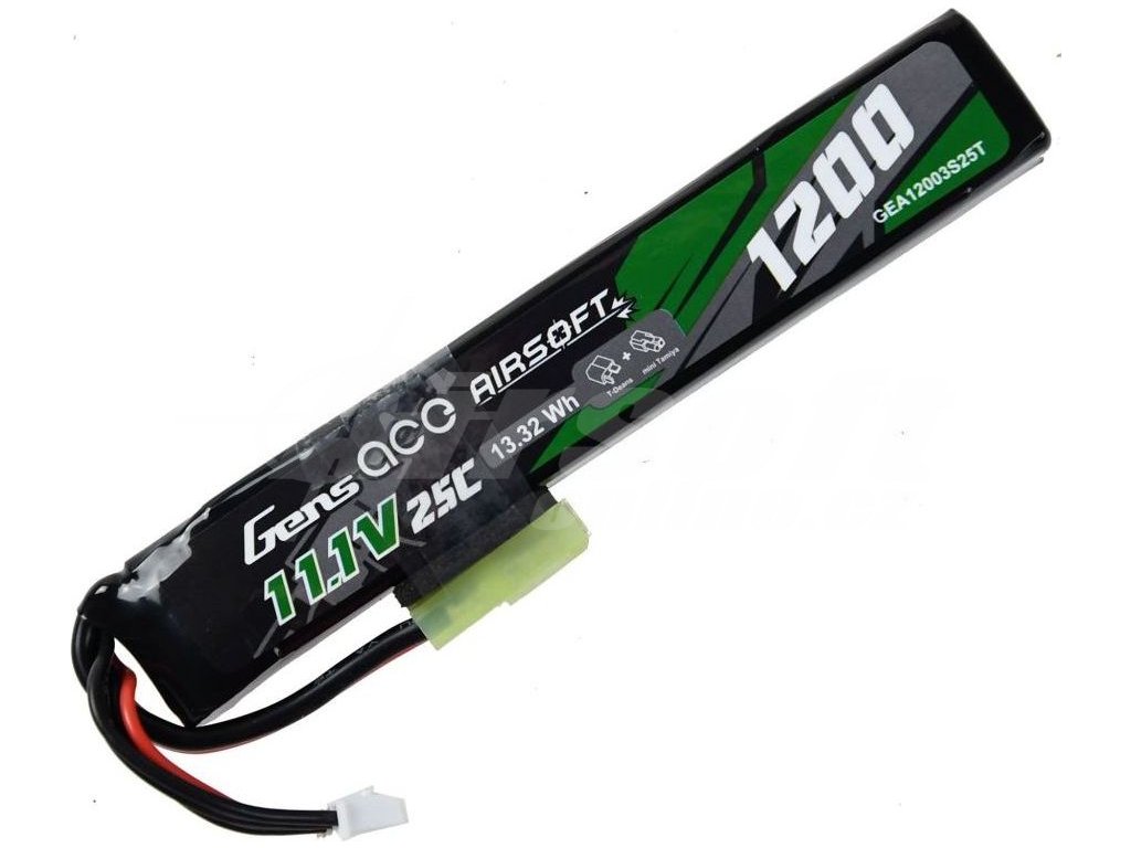 Li-Pol akumulátor Gens ace 11,1V 1200mAh 25C s malou Tamiya + redukcí na Dean-T – univerzální energie pro AEG repliky