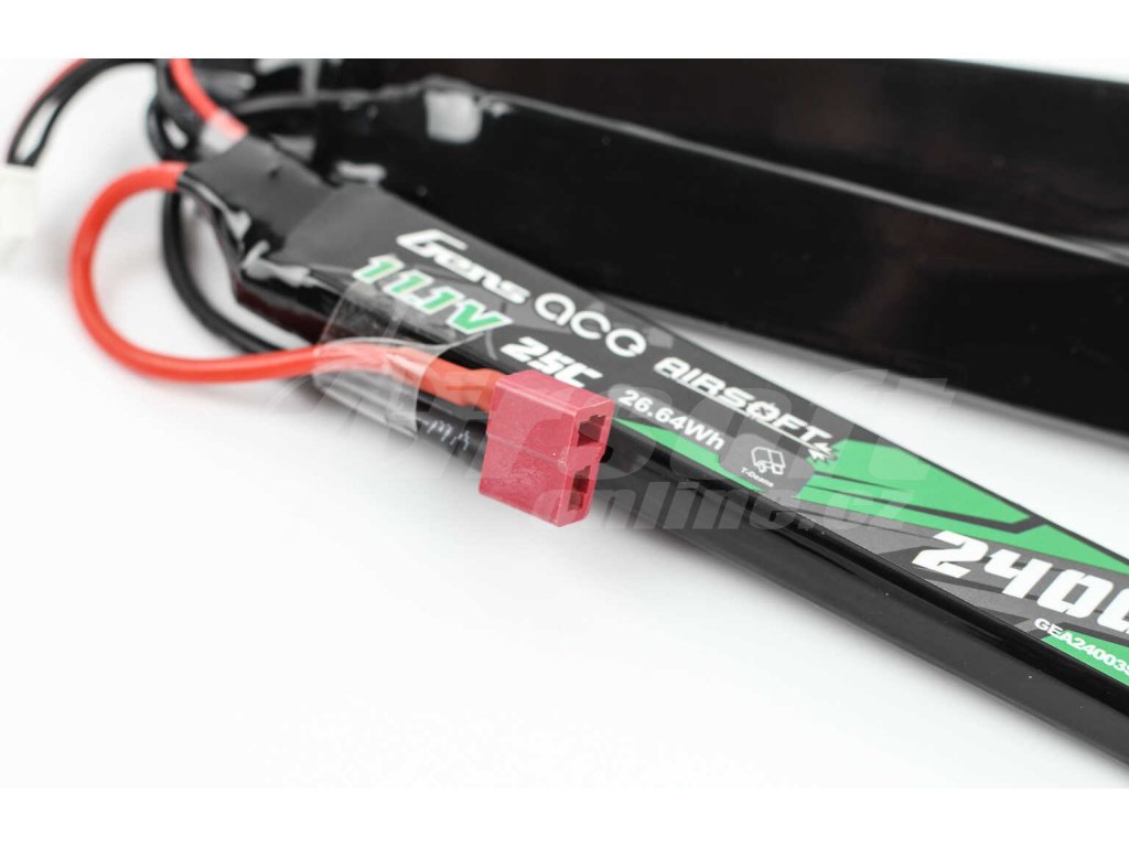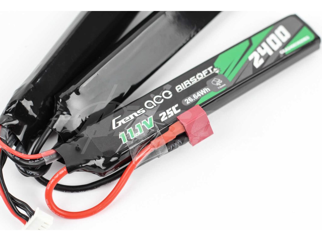 Akumulátor je rozdělen do tří samostatných článků, což umožňuje lepší rozmístění v pažbě nebo jiných prostorech ve zbrani. Kompaktní rozměry každého článku (125 × 20 × 10 mm) usnadňují instalaci i do méně dostupných prostor. Baterie je vybavena konektorem Dean-T, který minimalizuje přechodové odpory a zvyšuje účinnost přenosu energie. Servisní konektor JST-XH umožňuje bezpečné a přesné nabíjení pomocí kvalitních Li-Pol nabíječek s balancerem.