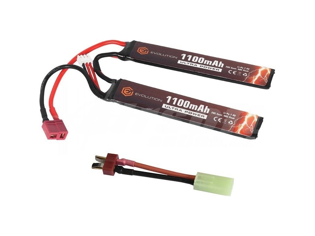 Li-Pol akumulátor Evolution Airsoft Ultra Power 7,4V 1100mAh – kompaktní síla v dvojdílném provedení