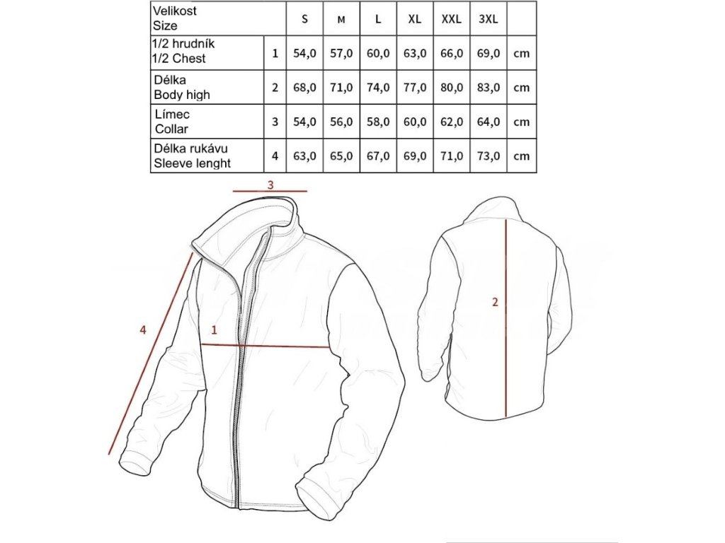 - Dostupné velikosti: S, M, L, XL, XXL, 3XL
