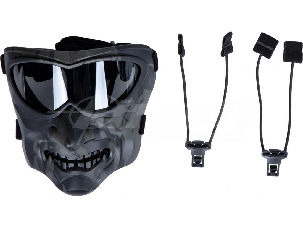 Součástí balení jsou 2 sady popruhů: jedna sada umožňuje připevnění masky k helmě/taktické přilbě, zatímco druhá umožňuje nošení masky na hlavě.