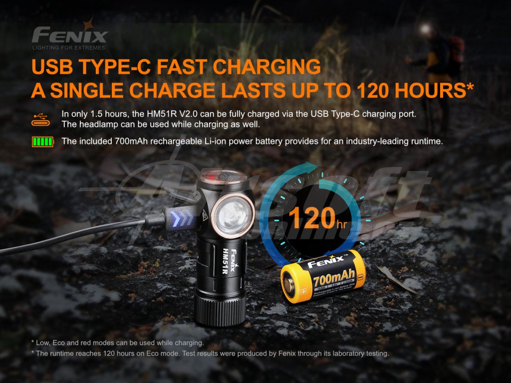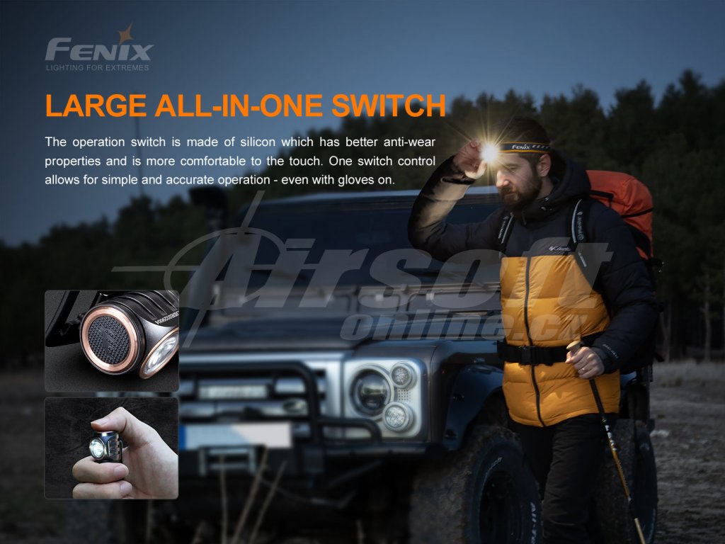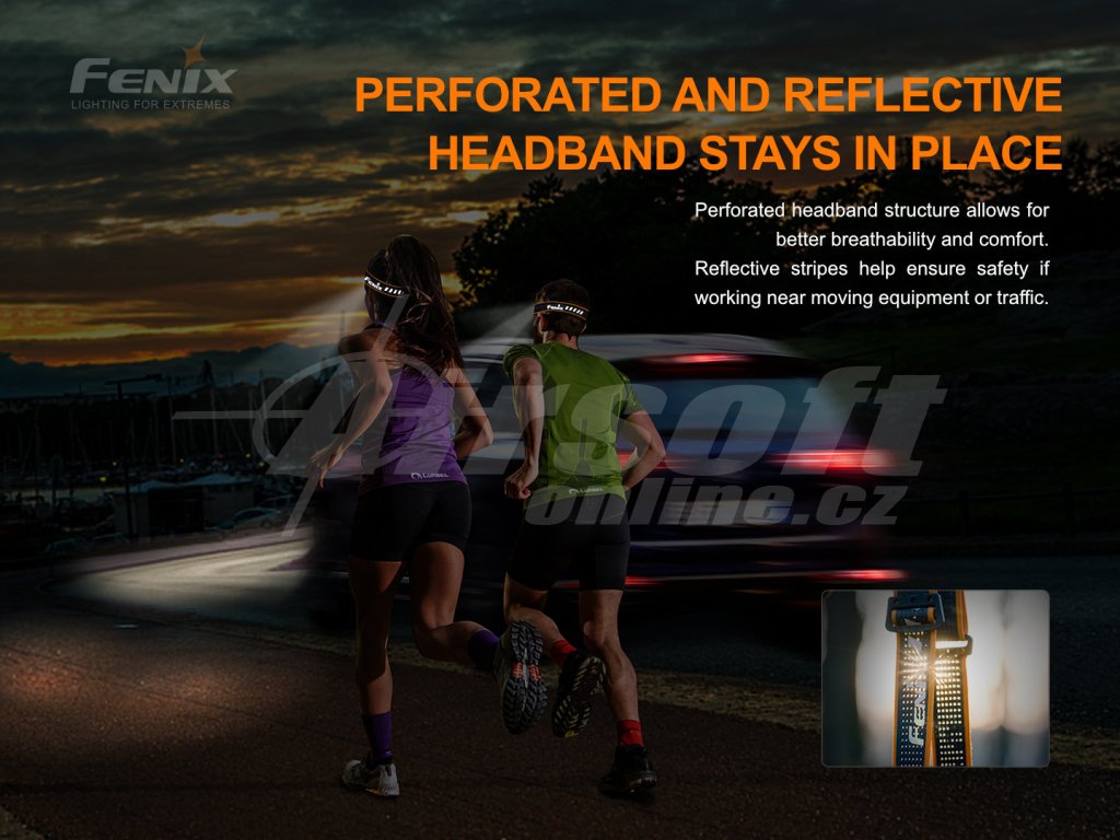 Sedm režimů osvětlení (4 bílé + 3 červené včetně SOS) poskytuje výdrž až 110 hodin. Červené světlo zachovává noční vidění a diskrétnost během stealth operací. USB-C nabíjení přímo ve svítilně s indikací stavu baterie v tlačítku zajišťuje maximální komfort. Magnetická koncovka umožňuje připevnění na železné povrchy. Celokovová konstrukce z leteckého hliníku s úpravou Type III hard anodized a vodotěsnost IP68 (ponor do 2 metrů) zaručují extrémní odolnost. Digitální konstantní regulace udržuje stálý výkon. Prémiová LED Cree XP-G3 s životností 50 000 hodin. Čelovku lze vyjmout z držáku a použít jako kapesní svítilnu. Komfortní popruh s reflexními prvky. Hmotnost 77 g včetně akumulátoru. Ochrana proti přehřátí a přepólování. Paměť režimů pro bílé i červené světlo.