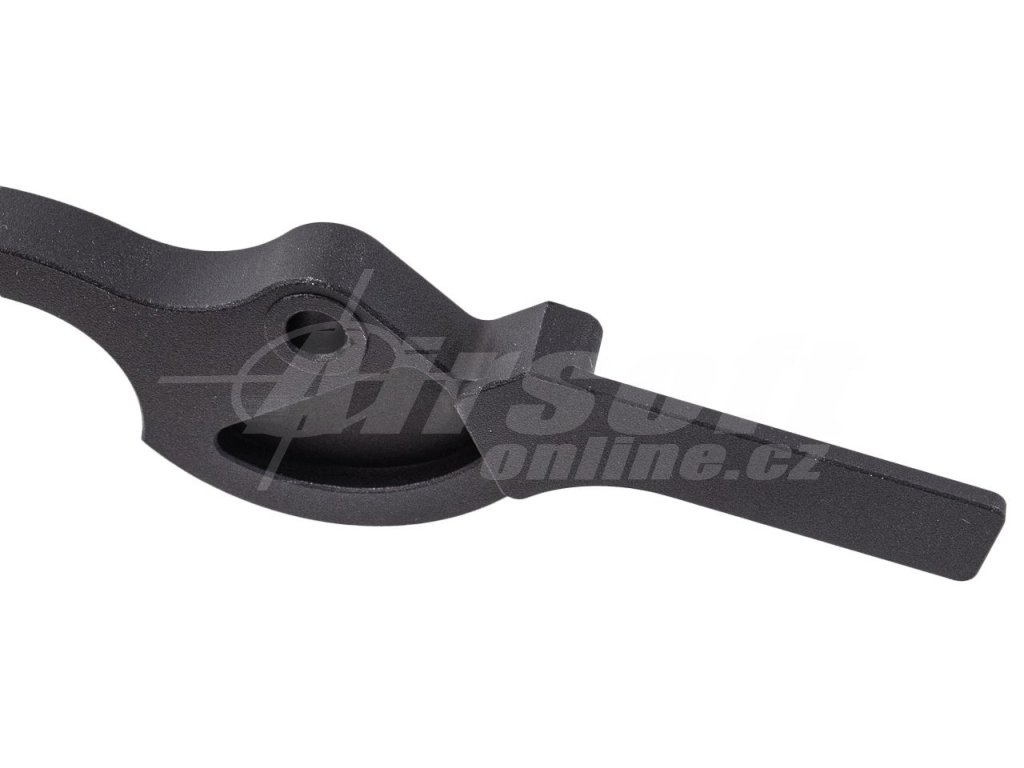 Nahraďte původní páku pod hlavní u G&G LevAR GNB touto vylepšenou verzí od Raptor TWI ve spolupráci s Lambda Defence. Upgrade páka z CNC obráběného hliníku 6065 nabízí vyšší pevnost a nižší hmotnost (pouze 82 g) než originální díl. Navíc díky možnosti volby 2 různých pozic montážního šroubu umožňuje upravit dráhu natahování pro rychlejší manipulaci. Výrazným přínosem je zkrácení dráhy pohybu při natažení a tím i celkové zrychlení nabíjení, tedy i výstřelu. Díky ergonomickému tvaru páky je manipulace pohodlnější i v rukavicích. Páka se montuje snadno výměnou za původní kus.