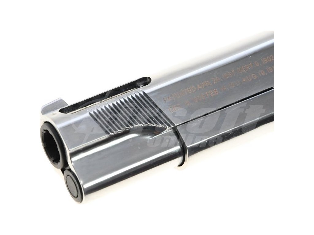 Tato moderní replika zaujme nejen svým elegantním stříbrným vzhledem, ale také detailním zpracováním, které zahrnuje realistické ražení originální značky Colt. Celokovové tělo a robustní konstrukce zajišťují dlouhou životnost, zatímco systém Blowback umocňuje zážitek ze střelby. Perforovaný závěr a vnější hlaveň přidávají na moderním designu a zajišťují rychlejší cyklování závěru.