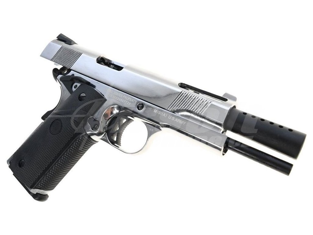 Airsoftová pistole Colt 1911 Ported - stříbrná, celokov, GBB, CyberGun/SRC