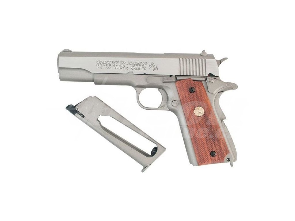 Pistole Colt 1911 MKIV Series 70 se může pochlubit celokovovým tělem, které zajišťuje realistickou váhu 890 g a vynikající odolnost. Povrchová úprava s originálním ražením dodává zbrani vzhled jako u reálné předlohy. Pažbení je vyrobeno z kvalitního plastu s imitací dřeva, což podtrhuje celkovou eleganci modelu.