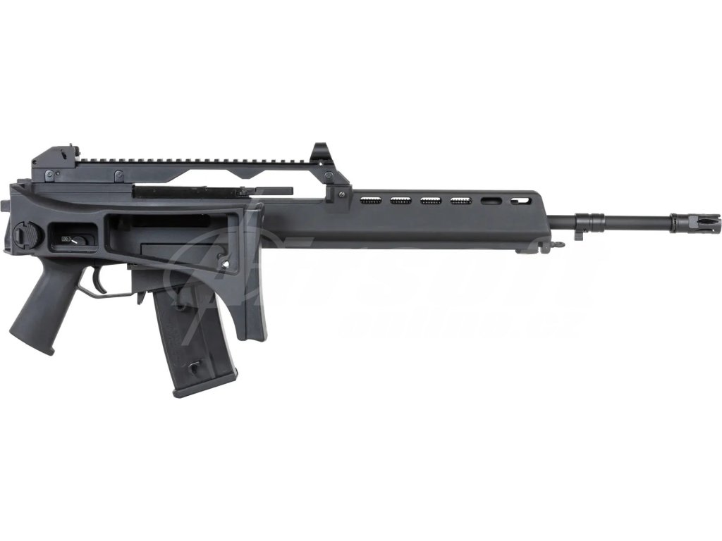 Režimy střelby umožňují jak jednotlivé výstřely, tak plně automatické dávky, což z pušky činí ideální nástroj pro CQB i střední vzdálenosti. Úsťová rychlost dosahuje až 135 m/s (443 fps) s energií 1,82 J, čímž poskytuje výjimečný výkon při zachování skvělé ovladatelnosti. Díky RIS lištám můžete snadno přidat kolimátor, svítilnu nebo laser, což výrazně rozšiřuje možnosti této repliky.