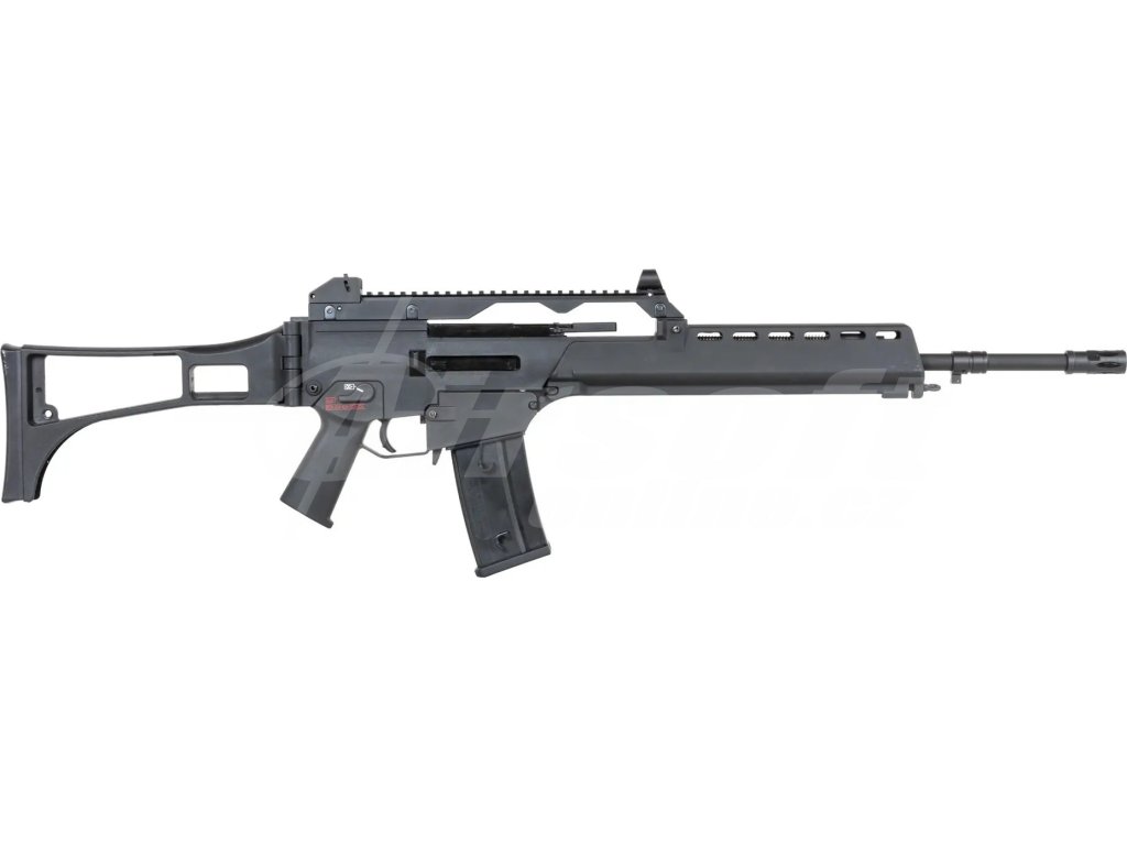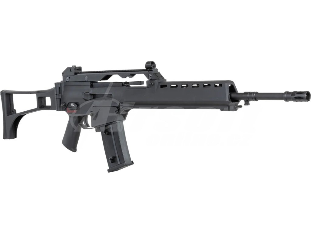 Tato airsoftová karabina vychází z německé útočné pušky G36E2, kterou navrhla společnost Heckler & Koch. G36 vznikla jako náhrada za pušku G3 a byla široce používána nejen v Bundeswehru, ale i v mnoha dalších armádách po celém světě. Je známá svou modulární konstrukcí, nízkou hmotností a vysokou spolehlivostí. Verze G36E2 vyniká možností instalace příslušenství a je často využívána u speciálních jednotek.