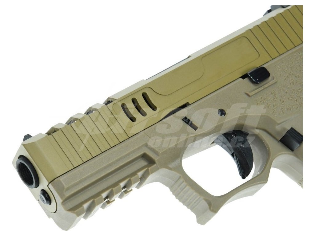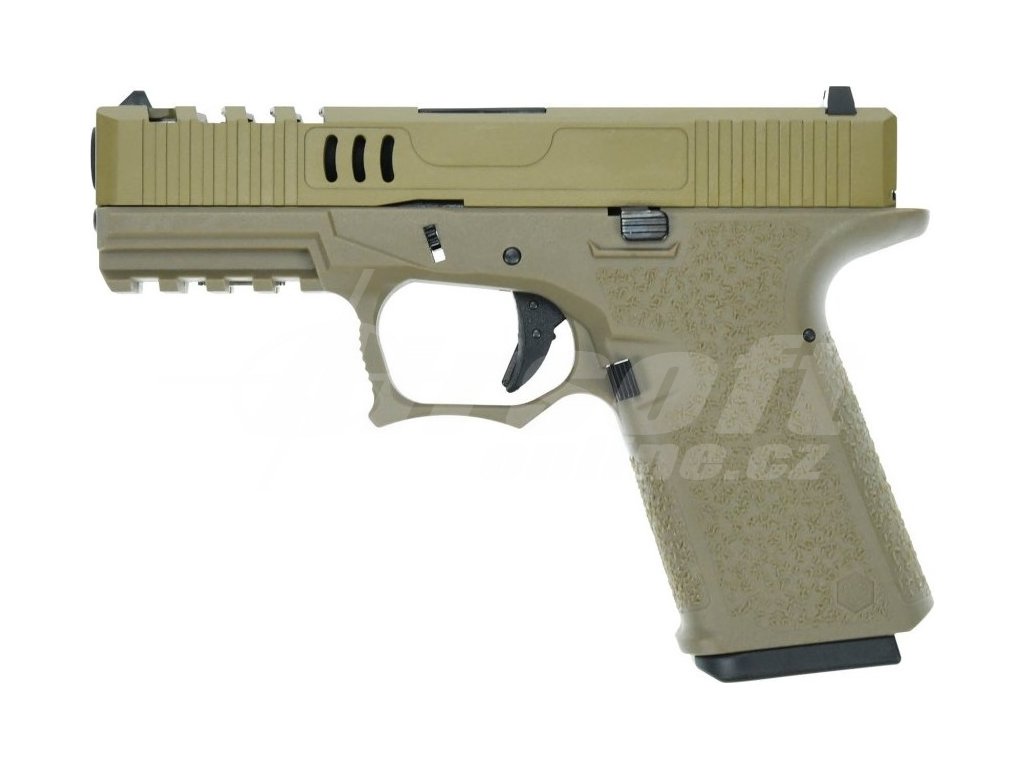 Airsoftová pistole G-Force 19 VX9 mod2 - písková TAN, GBB, Armorer Works Custom