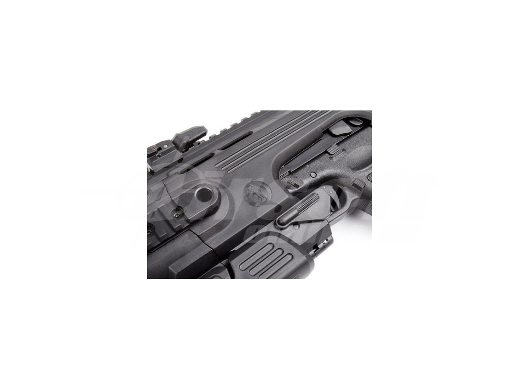 Funkční a promyšlený set poskytuje mnohem lepší držení zbraně a zároveň funguje jako platforma pro montáž velkého množství dalších doplňků. Nyní můžete využívat pistoli v mnohem širším rozsahu, s větší rychlostí střelby a zároveň je kladen důraz na dosažení vyšší přesnosti střelby. Pistole nevyžaduje demontáž či jiné zásadní úpravy, takže stačí jednoduché vložení (zaklapnutí) do konverze. Pistole je integrována do pažbení jako celek a je hlavní funkční díl celého kitu. Na horní části se nachází 24 cm dlouhá RIS lišta, která umožňuje snadnou montáž libovolného zaměřovače, nebo můžete využívat dodaná sklopná mířidla. Další tři kratší raily usnadní montáž libovolného taktického příslušenství. Konverze dále vyniká otvory na QD úchyty popruhu, teleskopickou pažbou se stavitelnou lícnicí a držákem na náhradní zásobník. Součástí balení je i přední sklopný grip pro přední ruku.