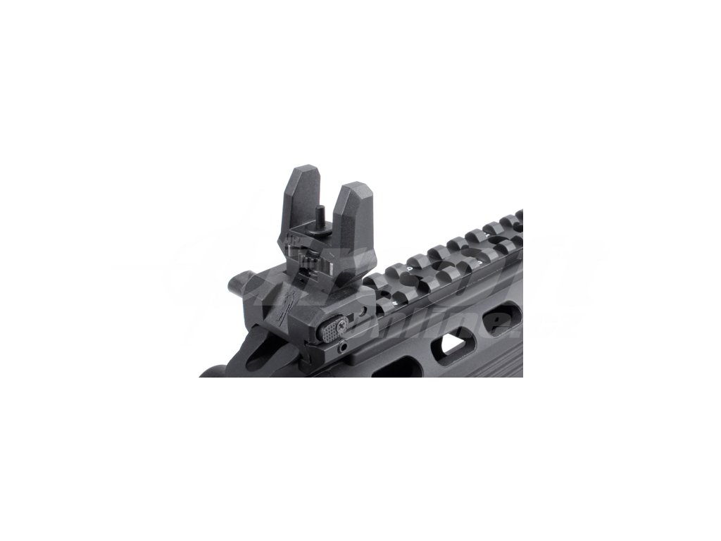 - Přední sklopný grip: Přední grip zvyšuje stabilitu a umožňuje pohodlné ovládání zbraně.