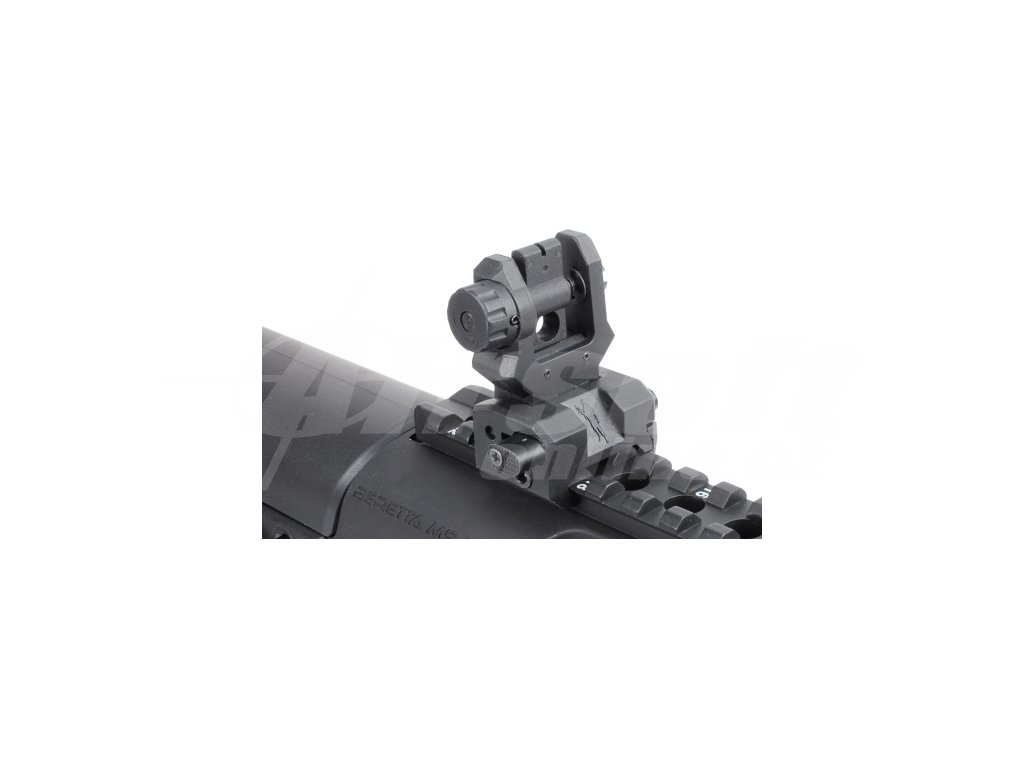 - Sklopná mířidla: Integrovaná sklopná mířidla umožňují přesné míření i bez použití optických zaměřovačů.