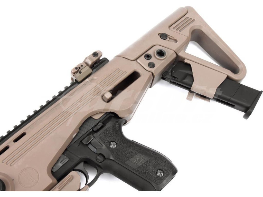 Konverzní kit je navržen tak, aby zjednodušil používání vaší pistole a přinesl nové možnosti pro taktické operace. Jednoduché vložení vaší pistole SIG226 do konverzního kitu je rychlé a intuitivní. Tento set nevyžaduje žádnou složitou demontáž pistole ani její úpravy, stačí pouze zaklapnout do připravené platformy. Pistole je bezpečně integrována do pažbení, což zajišťuje větší stabilitu při střelbě a lepší kontrolu.