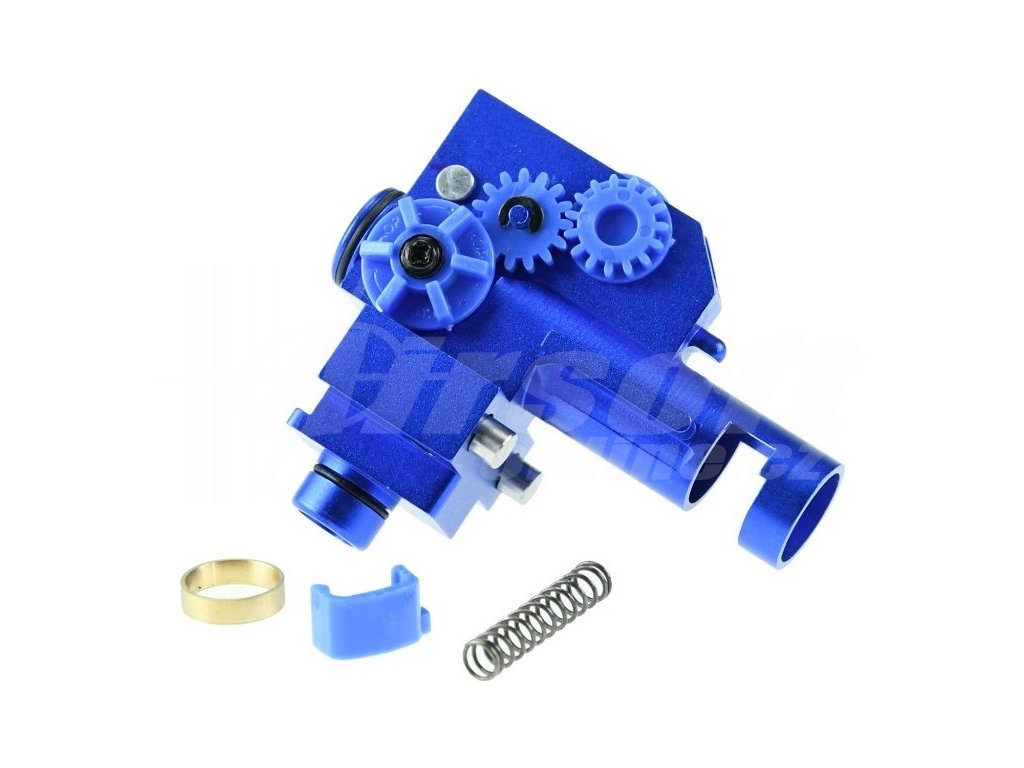 Kovová CNC HopUp komora s vymezovacím blokem mechaboxu pro zbraně M4.