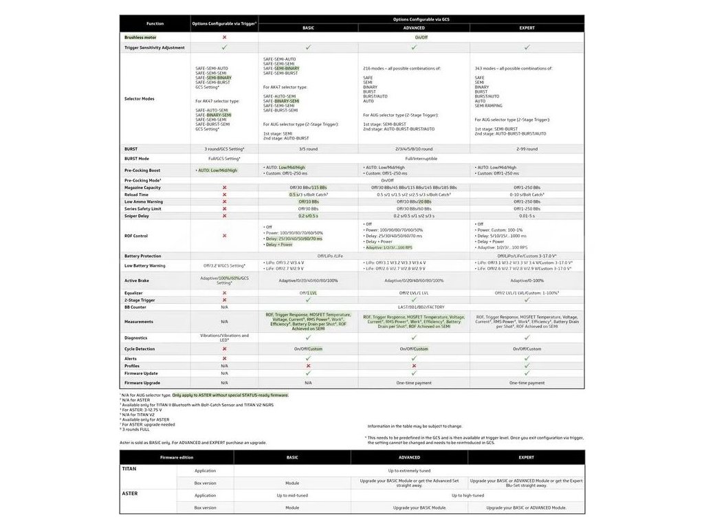 S obrovským množstvím programovatelných a upravitelných věcí mosfetu si uživatelé AEG libovali a chválili svoje AEG, GATE však právě dokázal tyto dva světy propojit a přinesl onu nastavitelnost do hry HPA, nyní si může každý nastavit zbraň jak potřebuje. Nemluvíme tady jen o možnosti přepnout fullauto na třírannou dávku, ale o nastavení citlivosti na 50 různých stupňů jen v prvním milimetru pohybu spouště.
