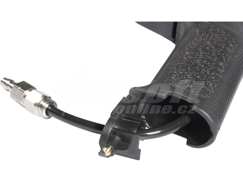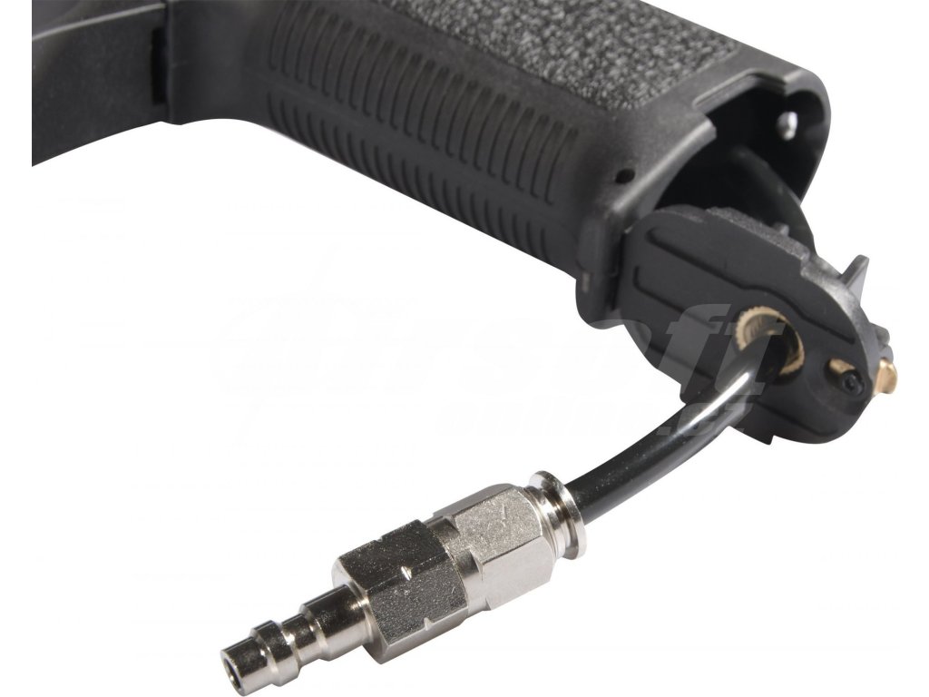 Pomocí aplikace GATE Control Station (stáhnete zde) lze snadno nastavit citlivost spouště, režimy střelby, počet výstřelů na dávku i kadenci. Systém zvládá i DMR režim s prodlevou mezi výstřely. HPA engine PULSAR D zajišťuje spolehlivý výkon a konzistentní podávání kuliček bez „mid-cap syndromu“. Systém je kompatibilní s běžnými tryskami pro AEG. Vzduchová hadice má průměr 6 mm a pasuje na standardní koncovky.