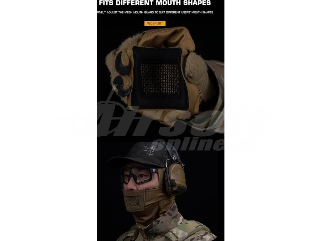 Taktická kukla Knight s ochrannou mřížkou na zuby - písková TAN, Wosport