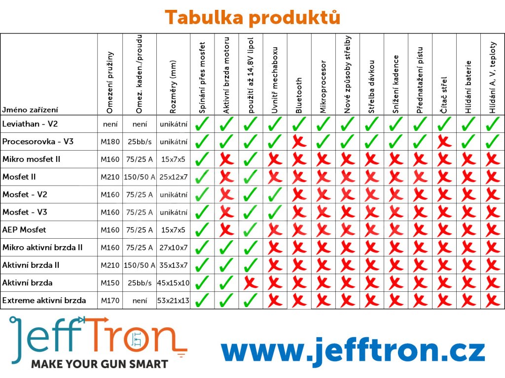 JeffTron je česká společnost, která se specializuje na výrobu elektronických komponentů pro airsoftové zbraně. Firma si získala renomé především díky svým vysoce kvalitním MOSFET jednotkám, které výrazně zvyšují výkon a spolehlivost airsoftových zbraní. JeffTron je rovněž oblíbený pro své vnitřní součástky a další elektronické komponenty, které přispívají k vylepšení funkcionality a dlouhé životnosti airsoftových replik. Navzdory své globální popularitě a přítomnosti na mezinárodním trhu jsou veškeré produkty JeffTron stále vyráběné v České republice. |