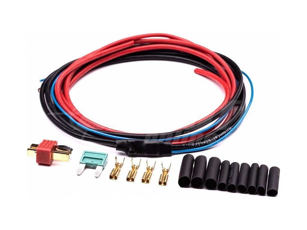- Na zařízení jsou připájeny 2 černé vodiče se silikonovou izolací o průřezu 1,5 mm2, délka 500 mm a modrý vodič o průřezu 0,25 mm2 s délkou 1000mm pro připojení kamkoliv na červený vodič. V balení je také přiložen 1000 mm dlouhý červený vodič se silikonovou izolací o průřezu 1,5 mm2