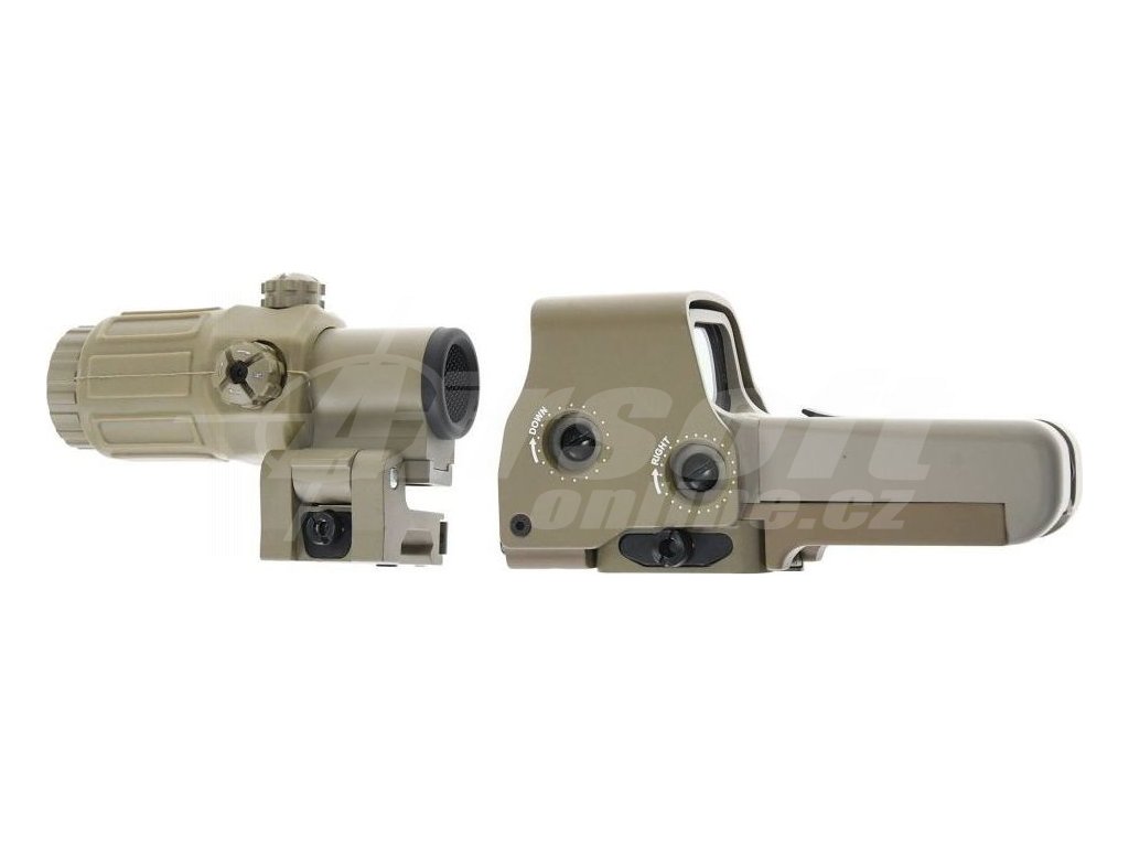Kolimátor 558 se zvětšením + killflash - pískový TAN, JJ Airsoft