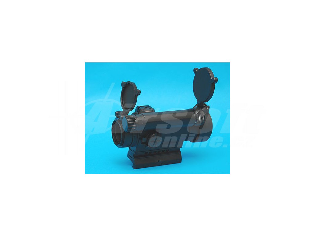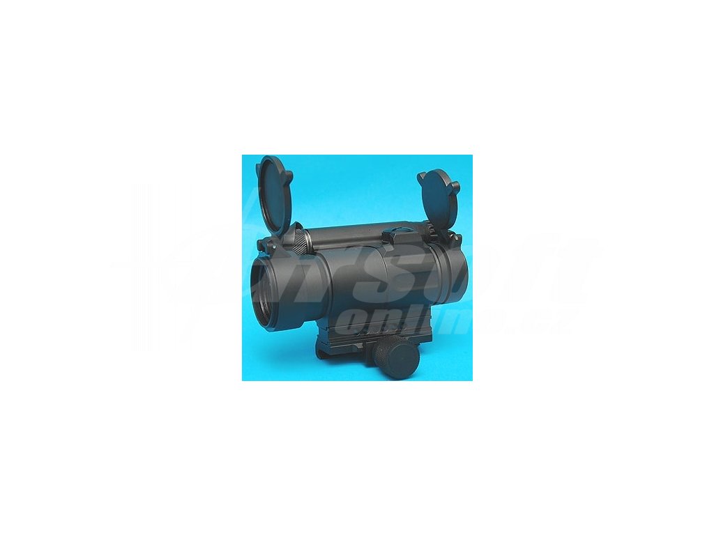 Kopie tubusového kolimátoru AIM POINT Comp M4 od společnosti G&P. Díky faktu, že tělo kolimátoru je z kovu je zaručená jeho vynikající odolnost. Kolimátor disponuje možností regulace os záměrného bodu (vertikálně i horizontálně, 5 stupňů nastavení). Záměrný bod je v provedení červené tečky.