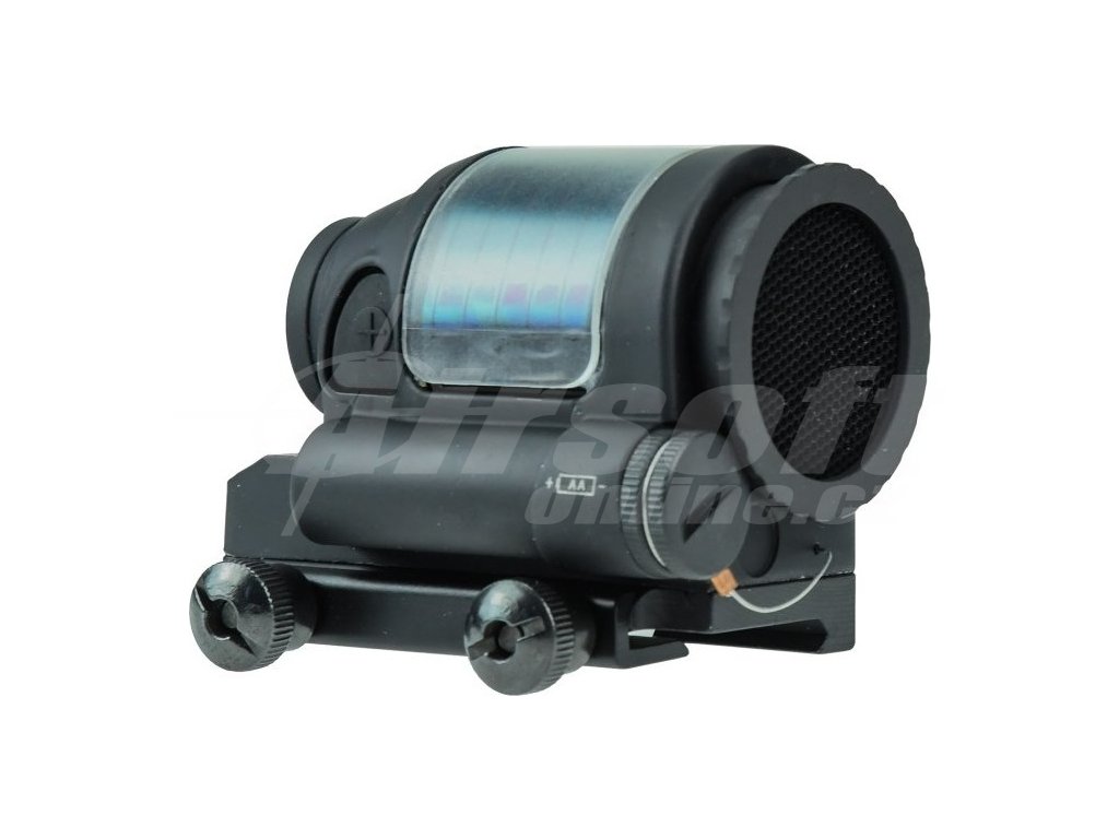 Kvalitně vyrobený kolimátor. Kolimátor je vybaven tlačítky pro regulaci jasu. Samozřejmostí je plná seřiditelnost záměrného bodu v obou osách. Kolimátor je napájený baterií typu AA a navíc má na horní straně solární článek jako dodatečný zdroj energie. Tento model se nasazuje na klasické 21mm(R.I.S.) lišty. Součástí kolimátoru je i killflash.
