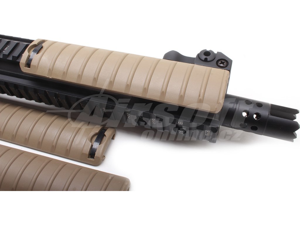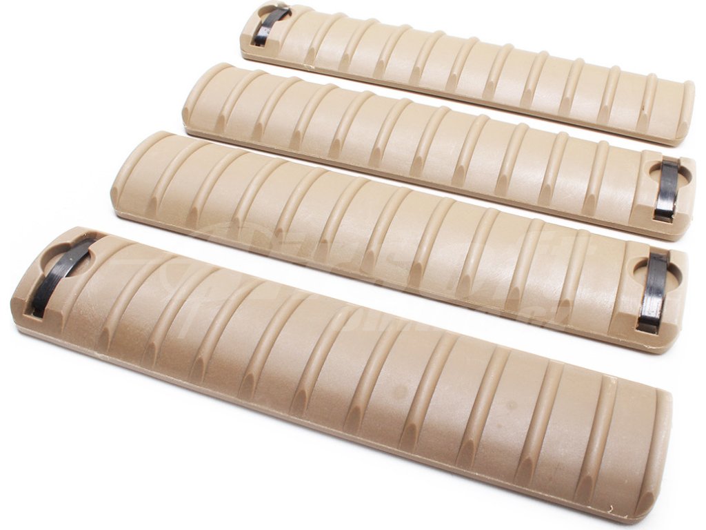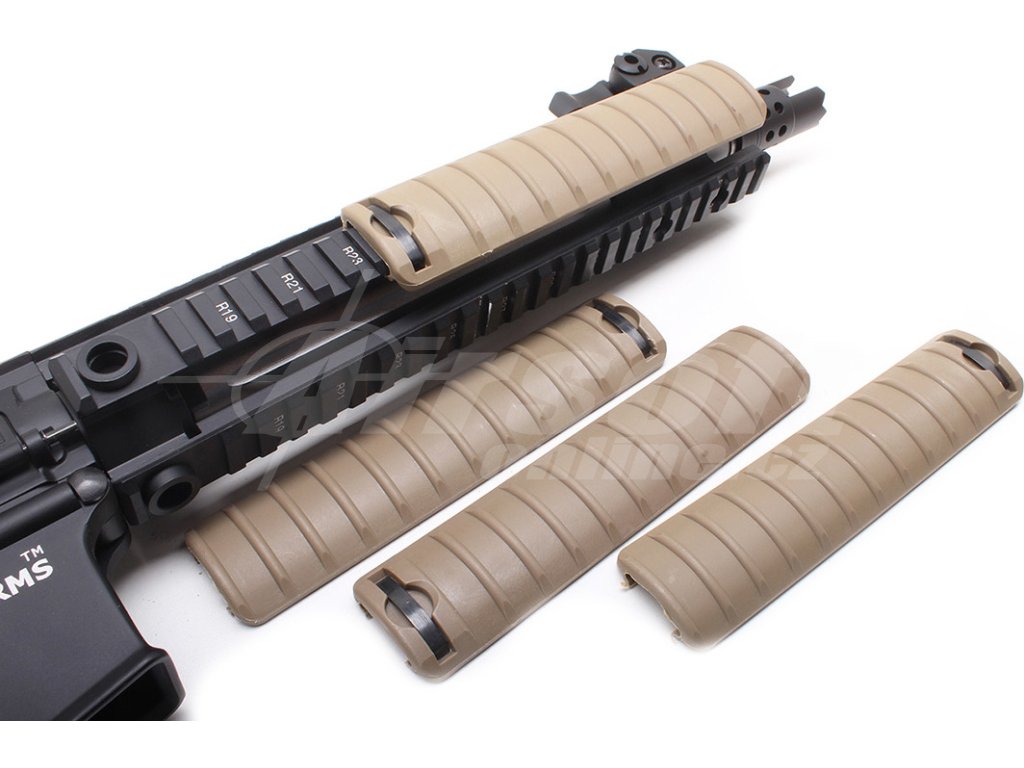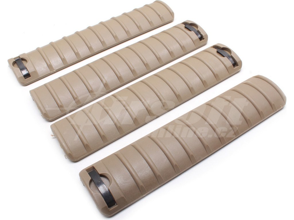 Plastové krytky RIS lišt. Instalují se snadným zasunutím na lištu a zajištění pružnou pojistkou proti nechtěnému vysunutí. RIS lišty chrání, ale hlavně slouží ke komfortnímu a jistému úchopu střelce. V balení čtyři pásy pískové barvy.