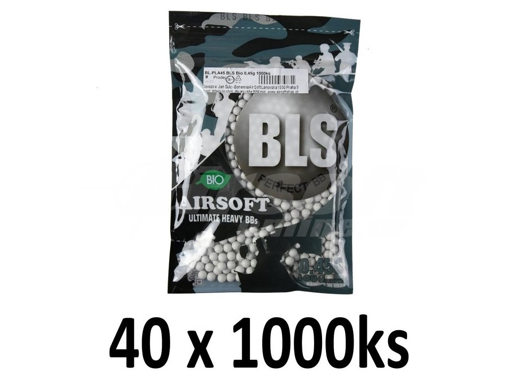Airsoftové kuličky BLS Ultimate Heavy BIO 0,45g, 1000bb, bílé, 40x