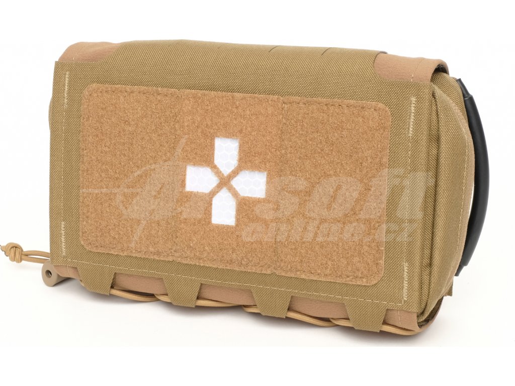 Samotná lékárnička je celá vyrobená z Cordury a uzavírá se dvoucestným zipem YKK. Její přední panel je bez jakýchkoliv prvků, které by mohly bránit zasunutí lékárničky do obalu. Zadní strana lékárničky je lemována panelem suchého zipu.