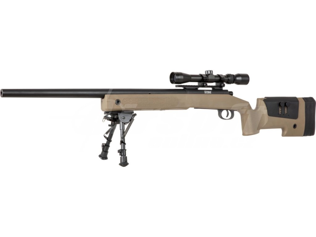 Airsoft sniper SA-S02 CORE™ SAG M40 High Velocity - písková TAN, optika, dvojnožka, Specna Arms