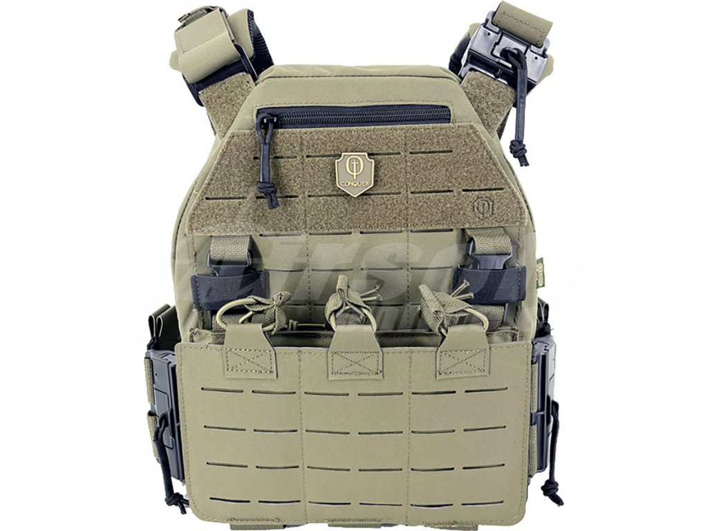 Značka Conquer přináší nový nosič plátu MQR v laser cut provedení, s měkčenými panely, má odnímatelný přední panel zajištěný pomocí suchého zipu a QD spon na magnet. Výhodu této vesty je měkčený systém, který je pohodlný i komfortní pro nošení jakéhokoli příslušenství.