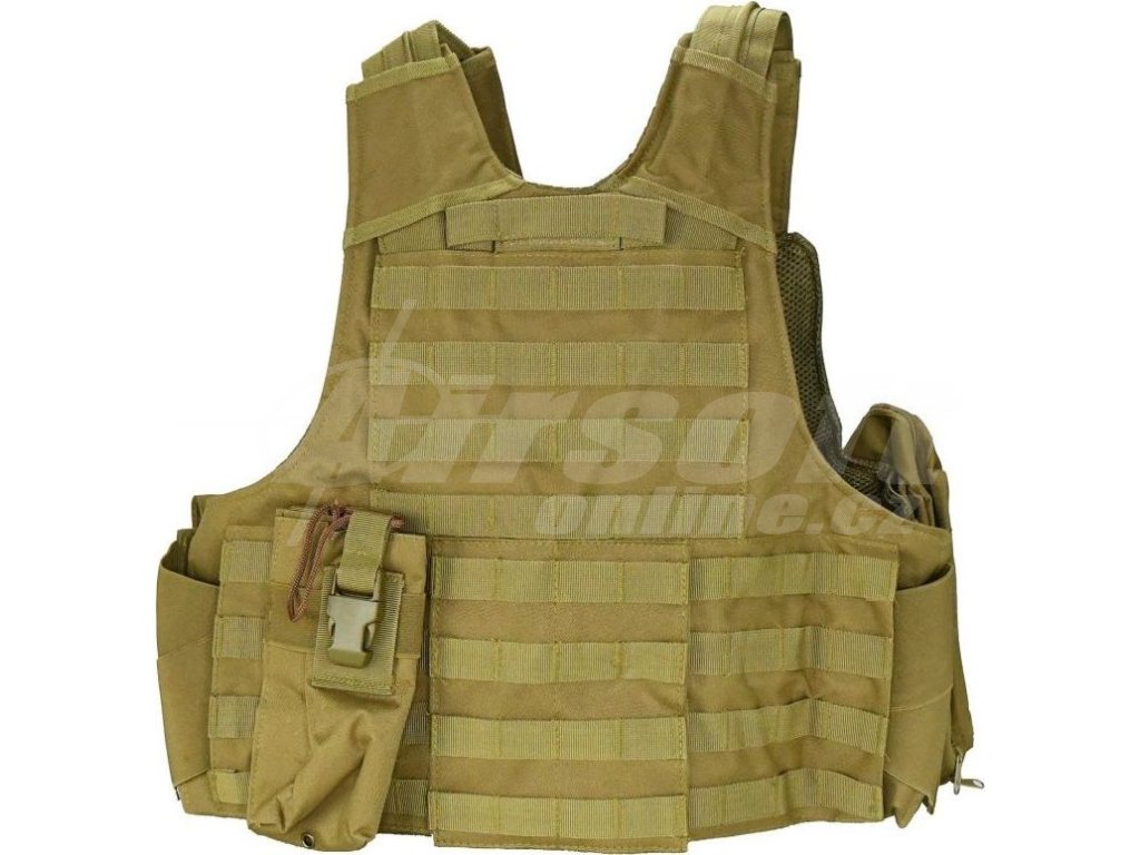 MOLLE vesta s kapsami pro vložení měkké i tvrdé balistiky a s modulární vazbou MOLLE pro připevnění sumek. Vesta je také vybavena řadou MOLLE sumek a systémem rychlého odhozu kdy stačí zatáhnout za šňůru a vesta se rozloží na několik částí.