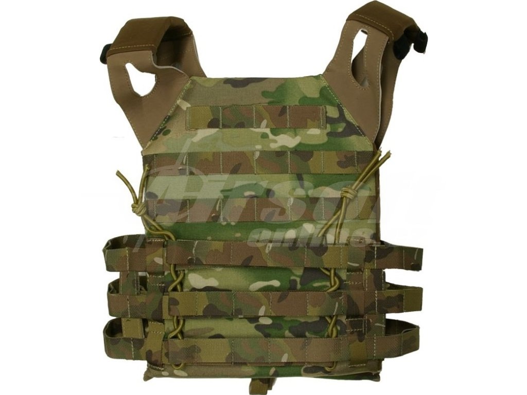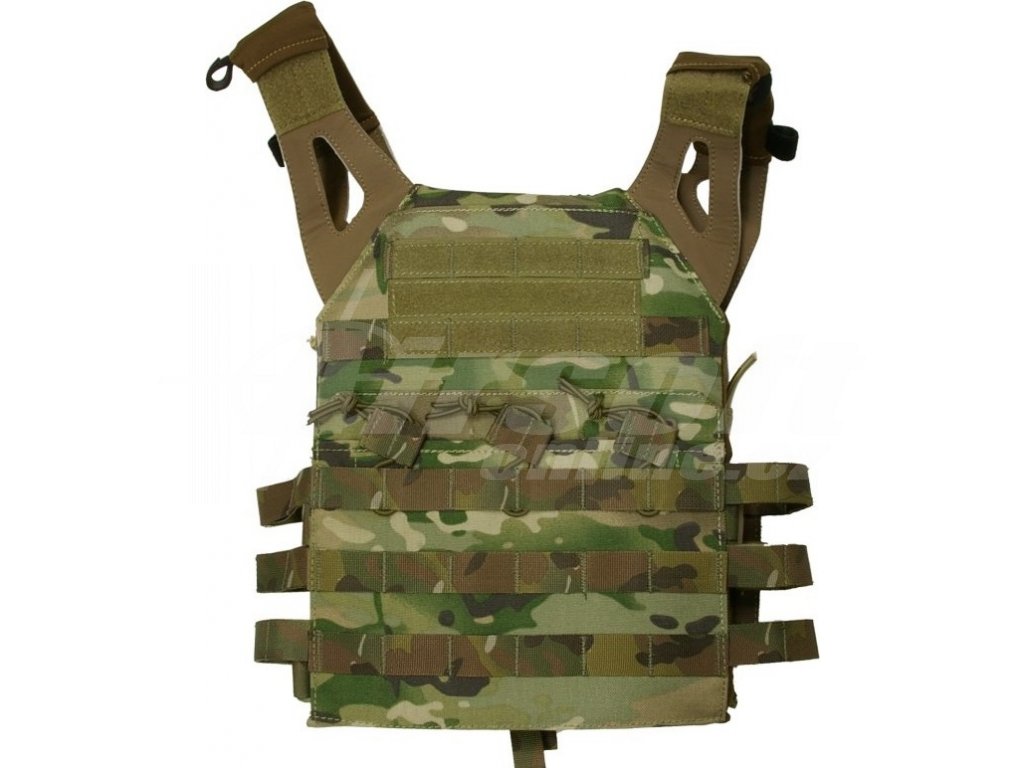 Warrior vesta JPC (Jumpable Plate Carrier) je lehká minimalistická vesta vytvořená pro maximální pohyblivost, úsporu hmotnosti a skladnost. Je vybavena prostorem pro vložení neprůstřelných plátů (součástí vesty je plastová imitace těchto plátů o síle cca 25mm), dále integrované sumky na zásobníky a admin sumka, též integrovaná. Vesta je samozřejmě opatřena mnoha MOLLE úchyty pro umístění různých sumek. Velikost je stavitelná jak přes ramena, tak přes prsa. Vhodná do rozměru cca 60 - 130 cm obvod přes prsa, tedy vesta je vhodná i pro menší hráče.