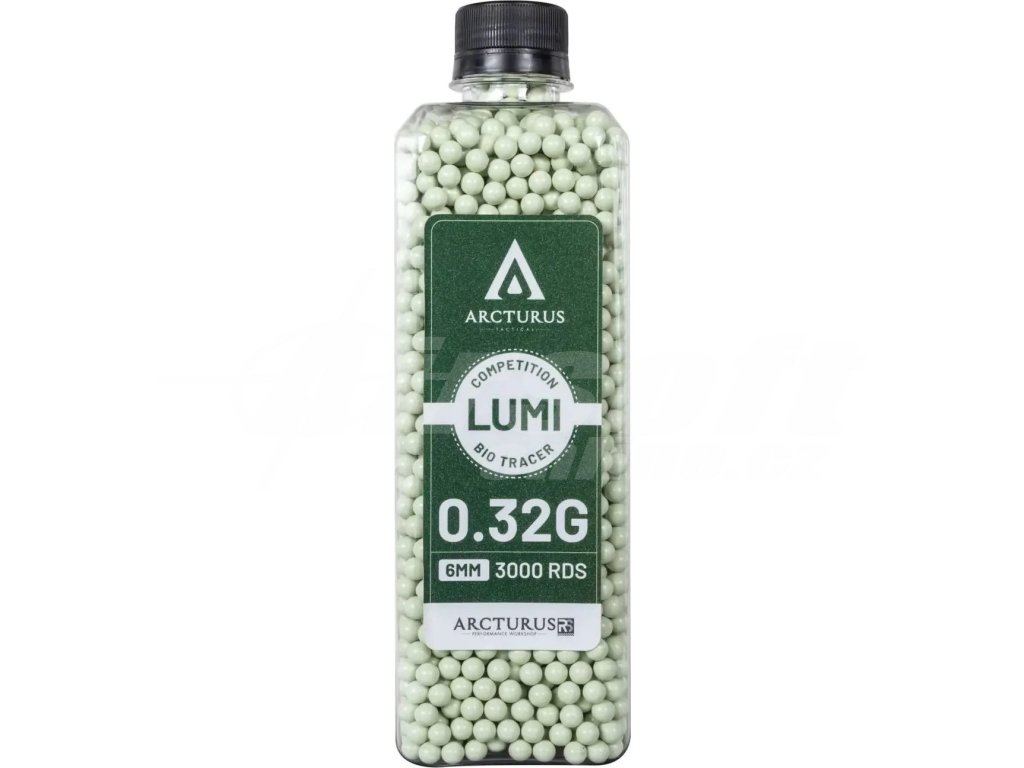 Airsoftové kuličky Arcturus RS® LUMI BIO TRACER 0,32g, 3000bb, nasvětlovací zelené, láhev