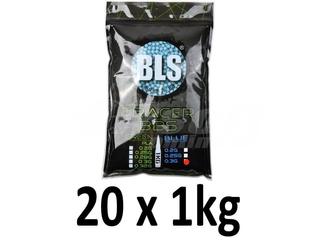 Airsoftové kuličky Tracer BLS 0,30g, 3300bb, nasvětlující modré, 20x
